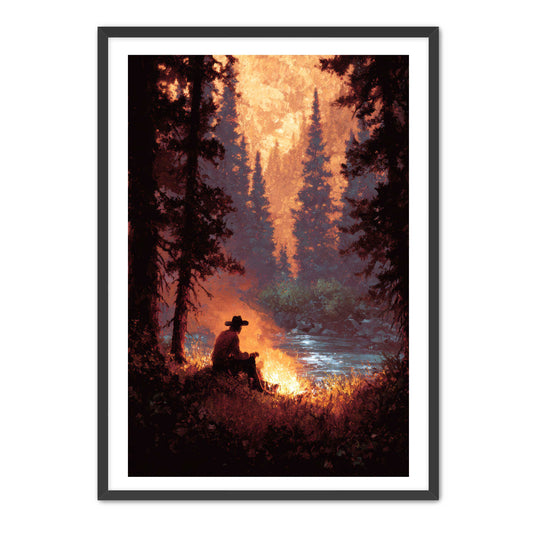Solo Cowboy Campfire Wall Art