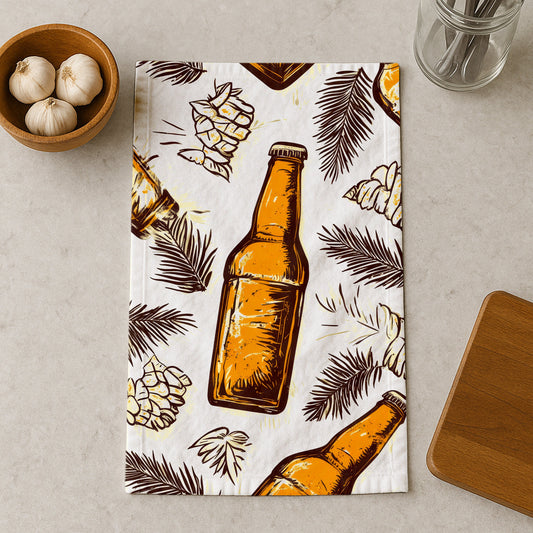 Amber Bottle And Hops Kitchen Towel