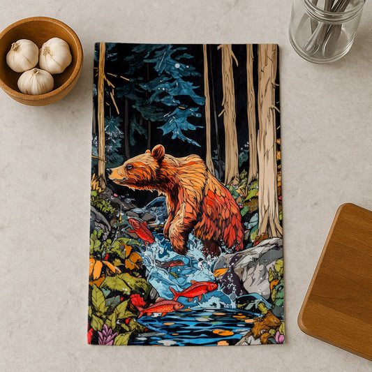 Bear In Flowing Stream Kitchen Towel