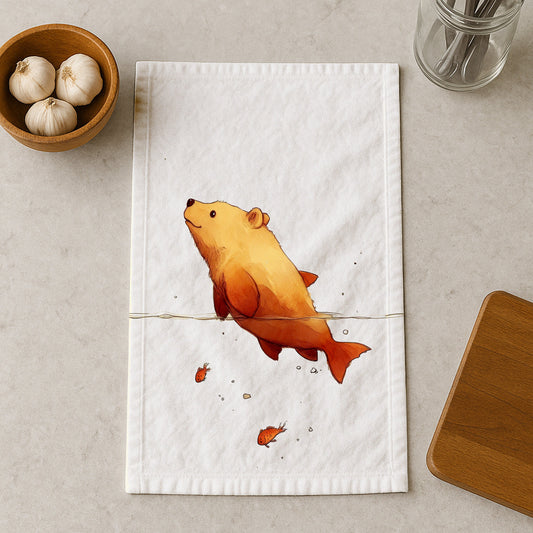 Bearfish Swimming Kitchen Towel
