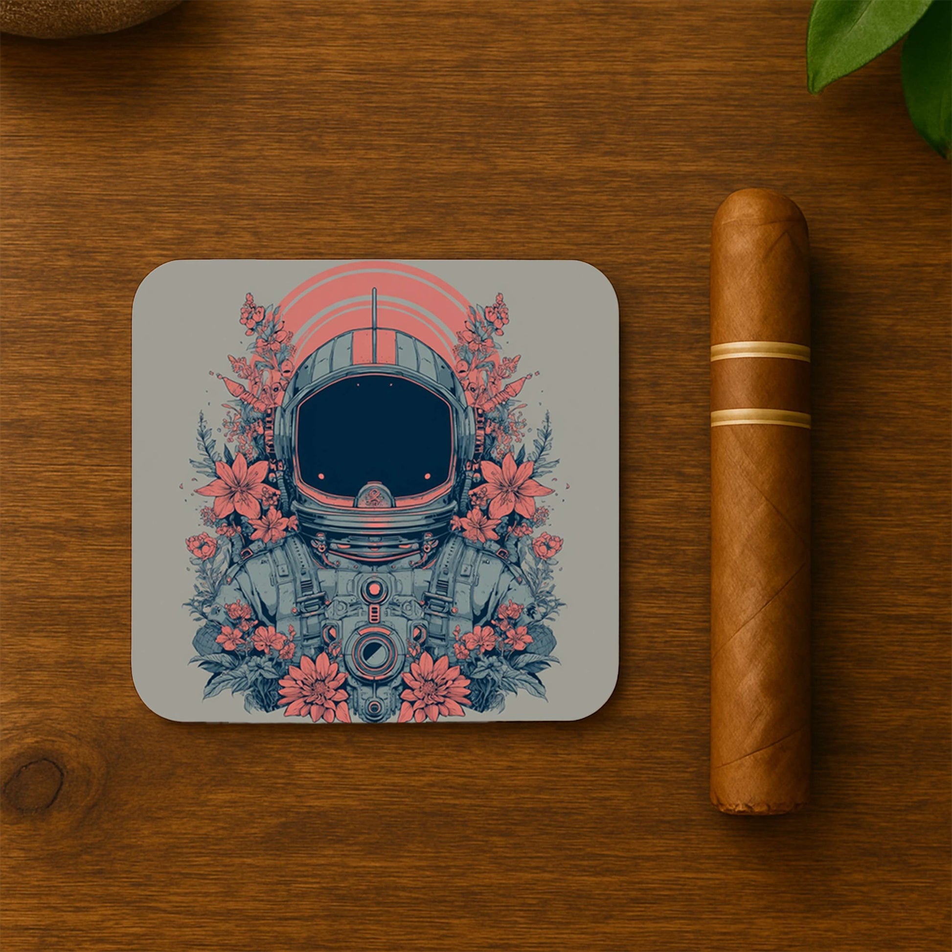 This Astronaut In Bloom coaster set adds bold, space-inspired detail—perfect decor for a modern men’s lounge.
