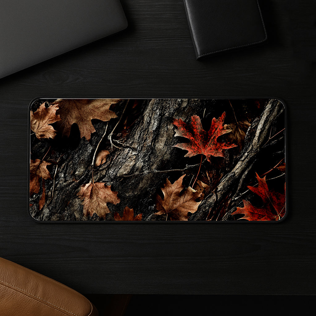 This Autumn Leaves On Bark desk mat offers earthy, decor-for-men comfort with a warm, natural woodland vibe.