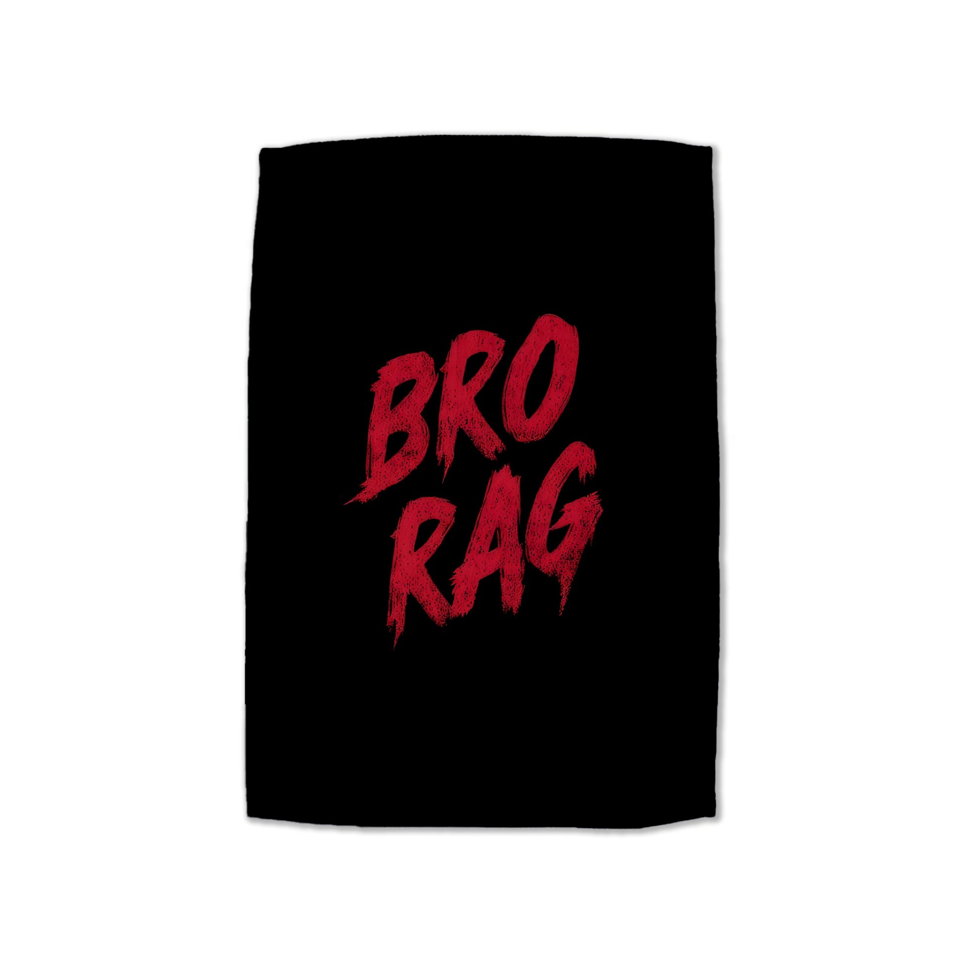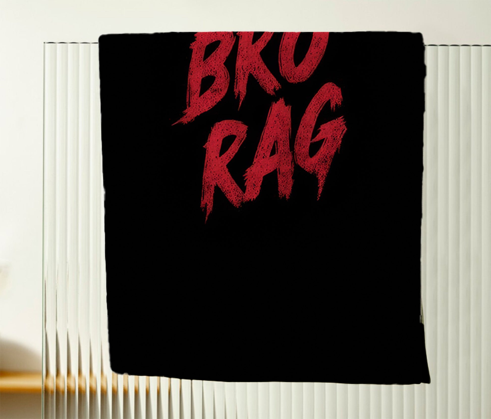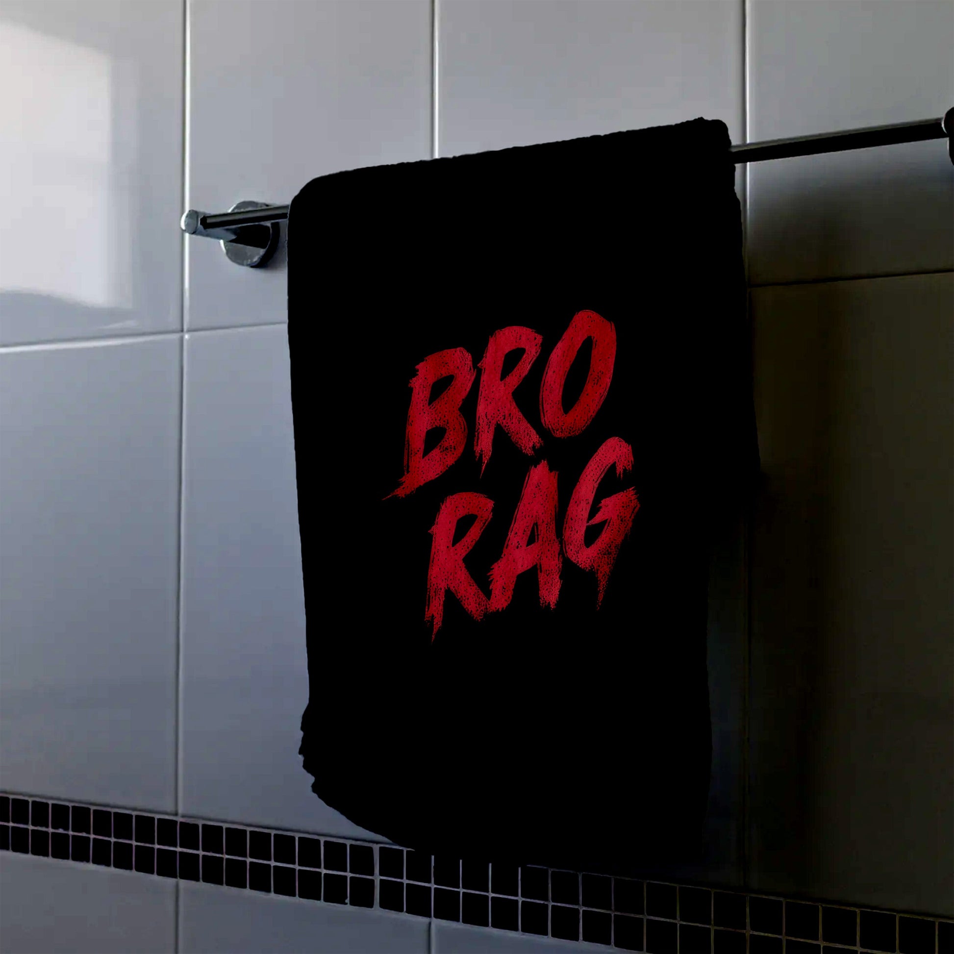 This Bro Rag On Black hand towel combines dark tones with striking designs, perfect for adding a sleek touch to men's bathroom decor.