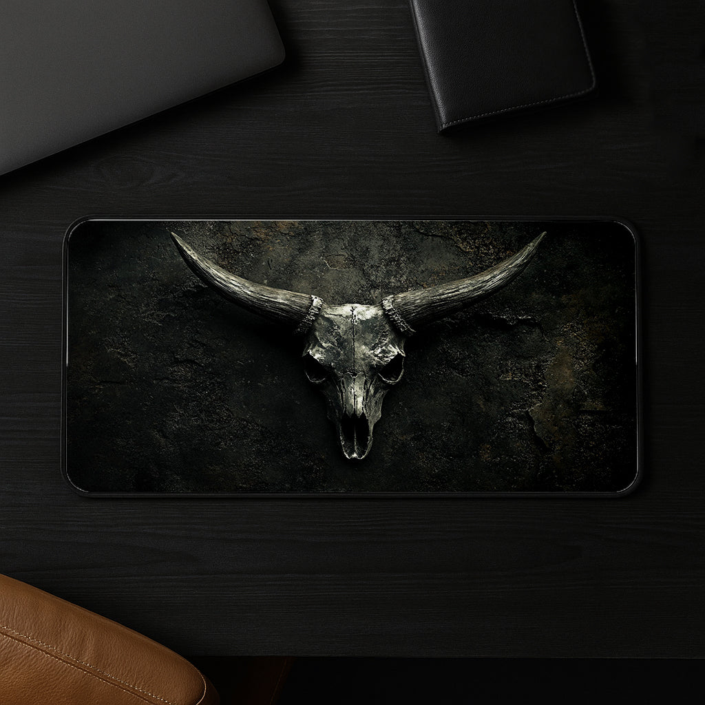 This Bull Skull On Wall desk mat brings bold, masculine decor with a rugged Western‑gothic vibe.