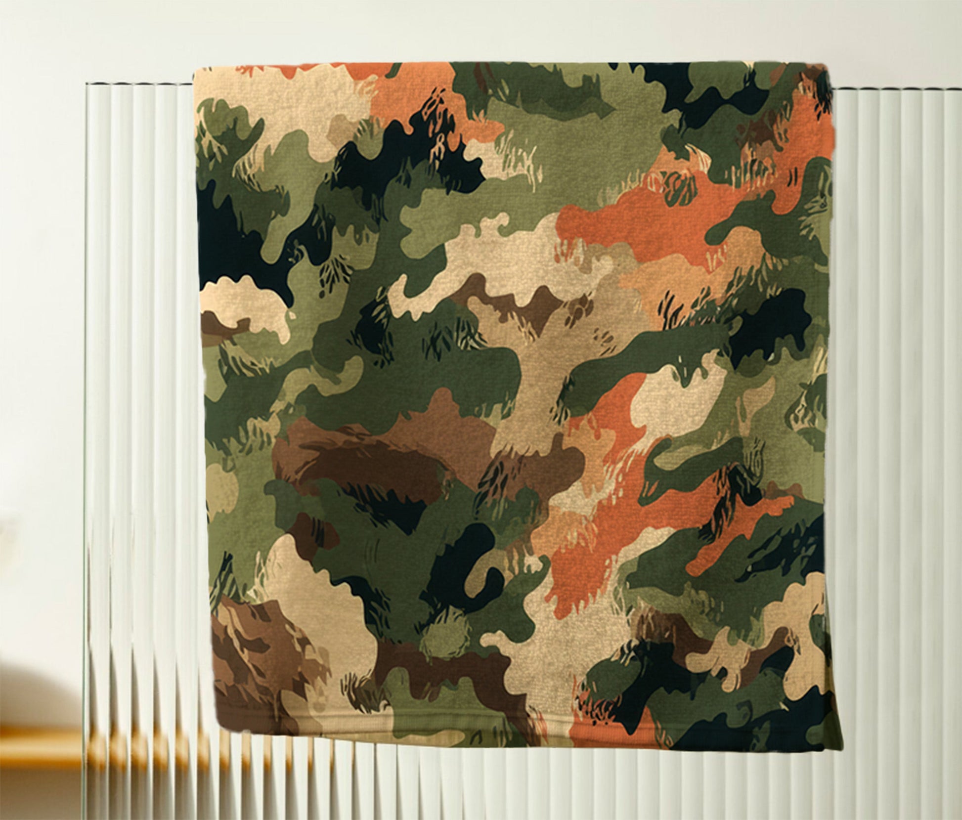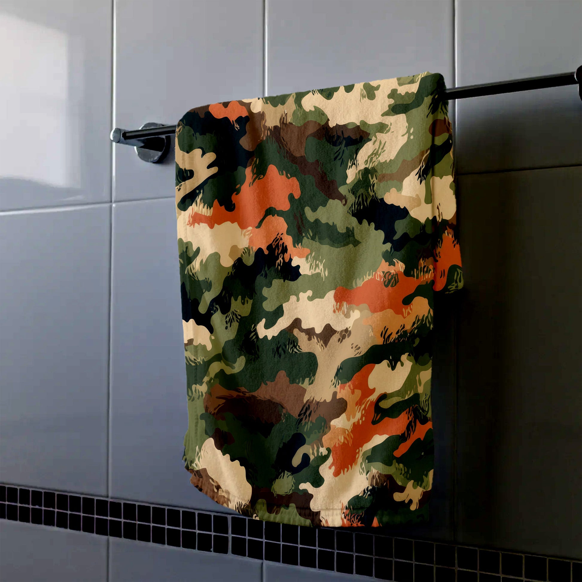 This Camouflage Pattern Mix hand towel offers a versatile camo design, ideal for masculine decor in men's bathrooms or outdoor-themed spaces.