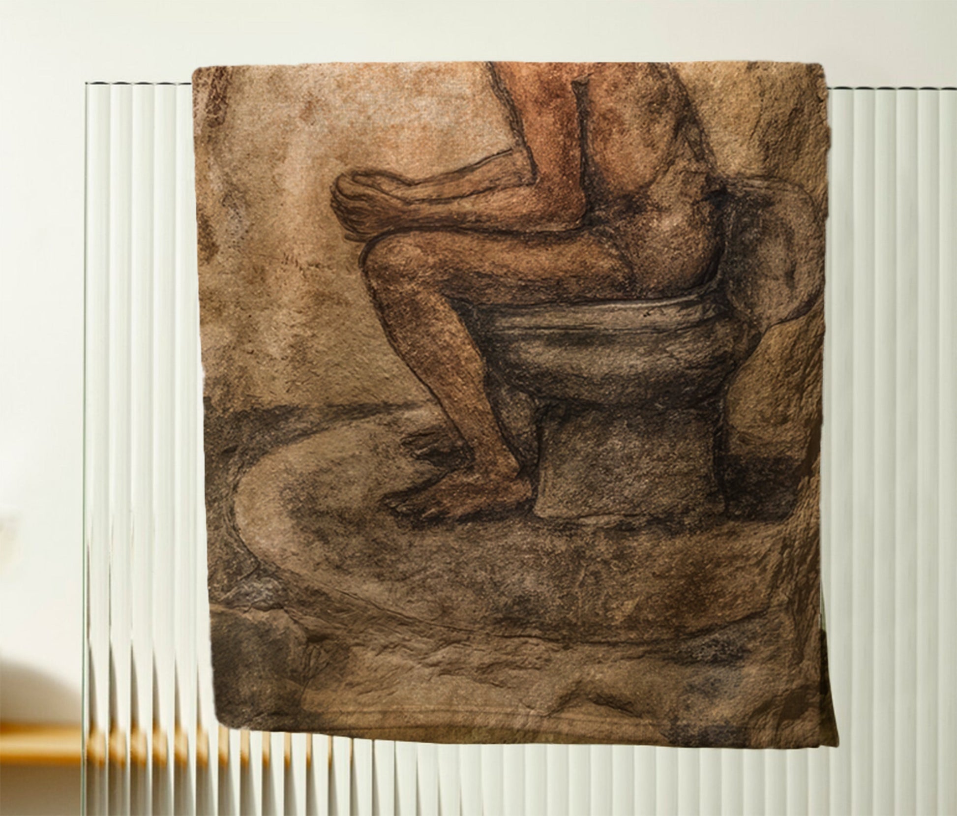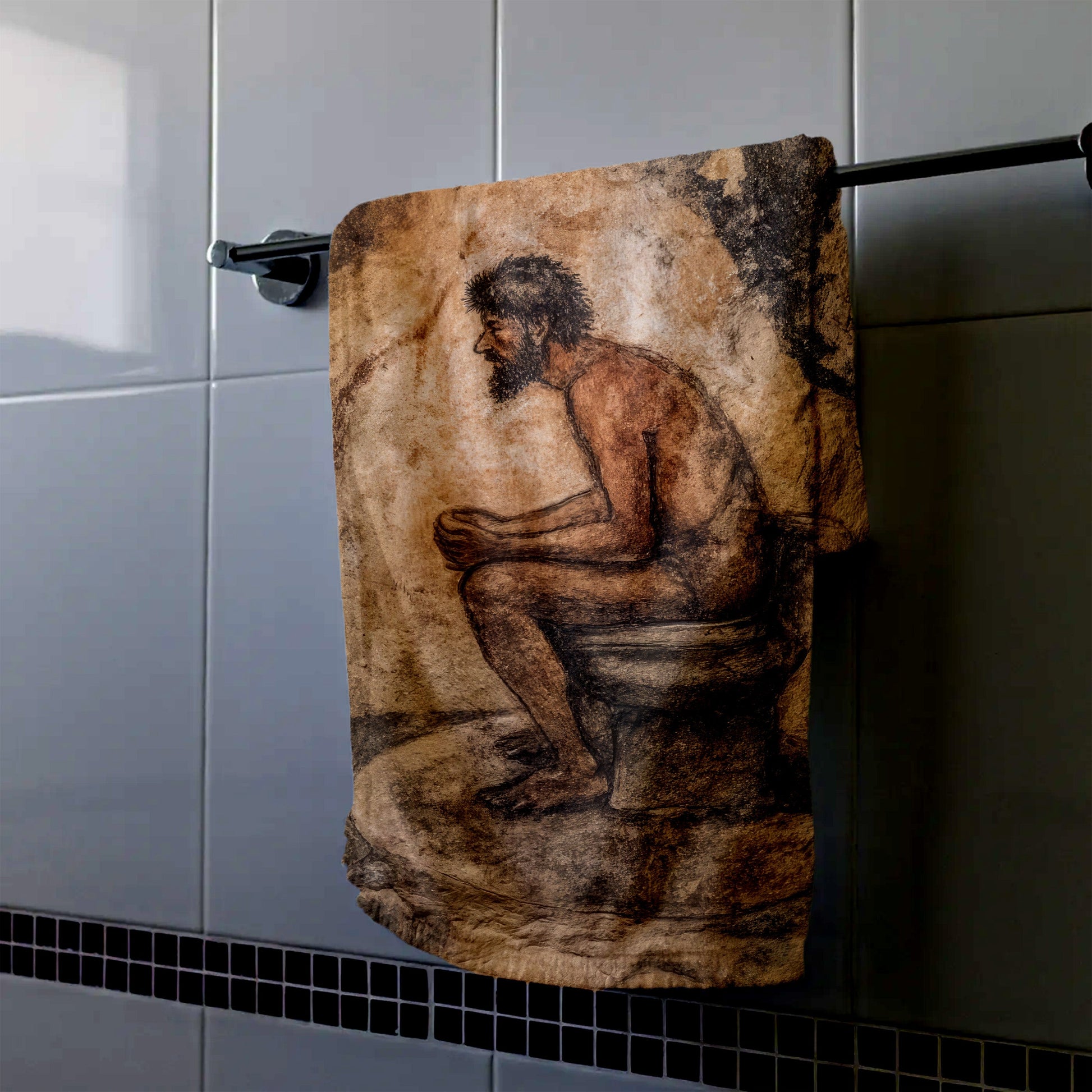 This Cave Figure Seated hand towel introduces primal artistry to men's bathroom decor, evoking ancient strength and mystery.