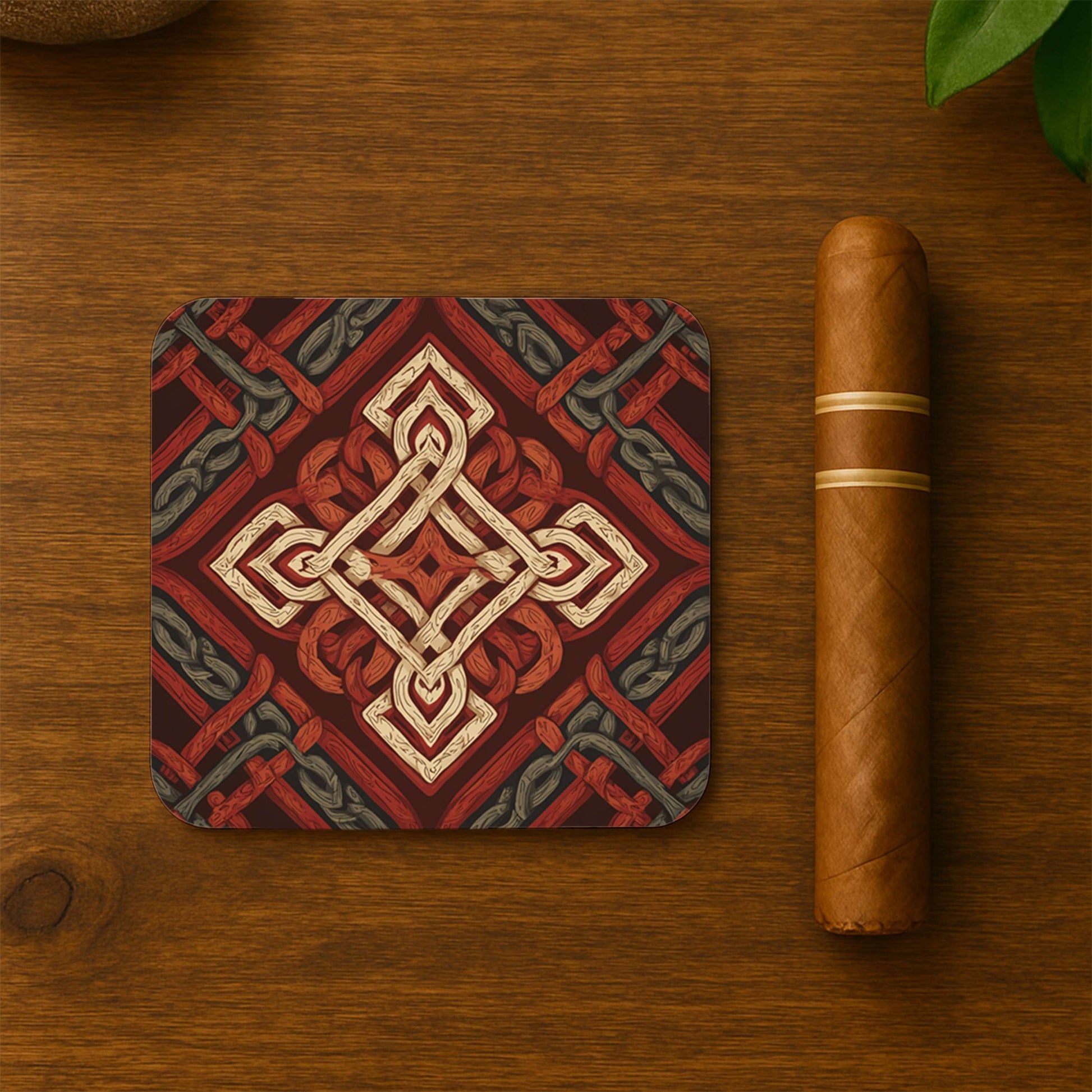 This Celtic Knot Pattern coaster set adds powerful symbolism and structure, ideal decor for men’s traditional spaces.