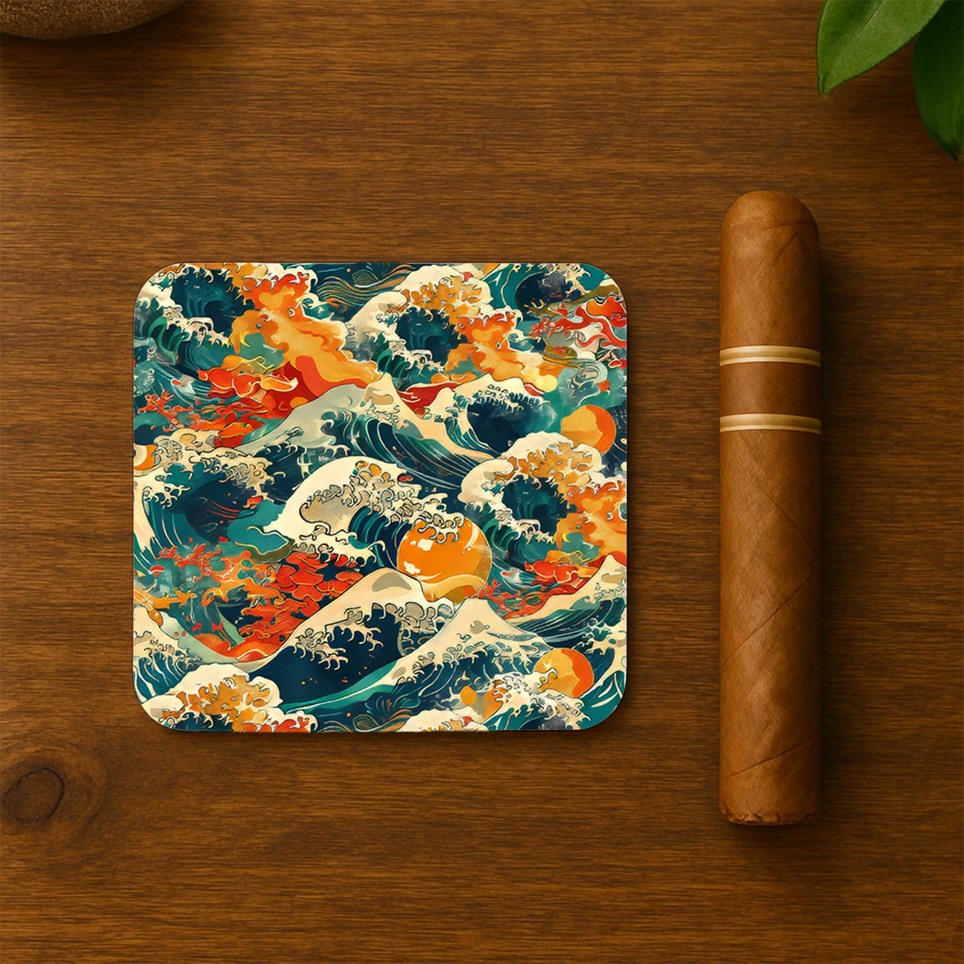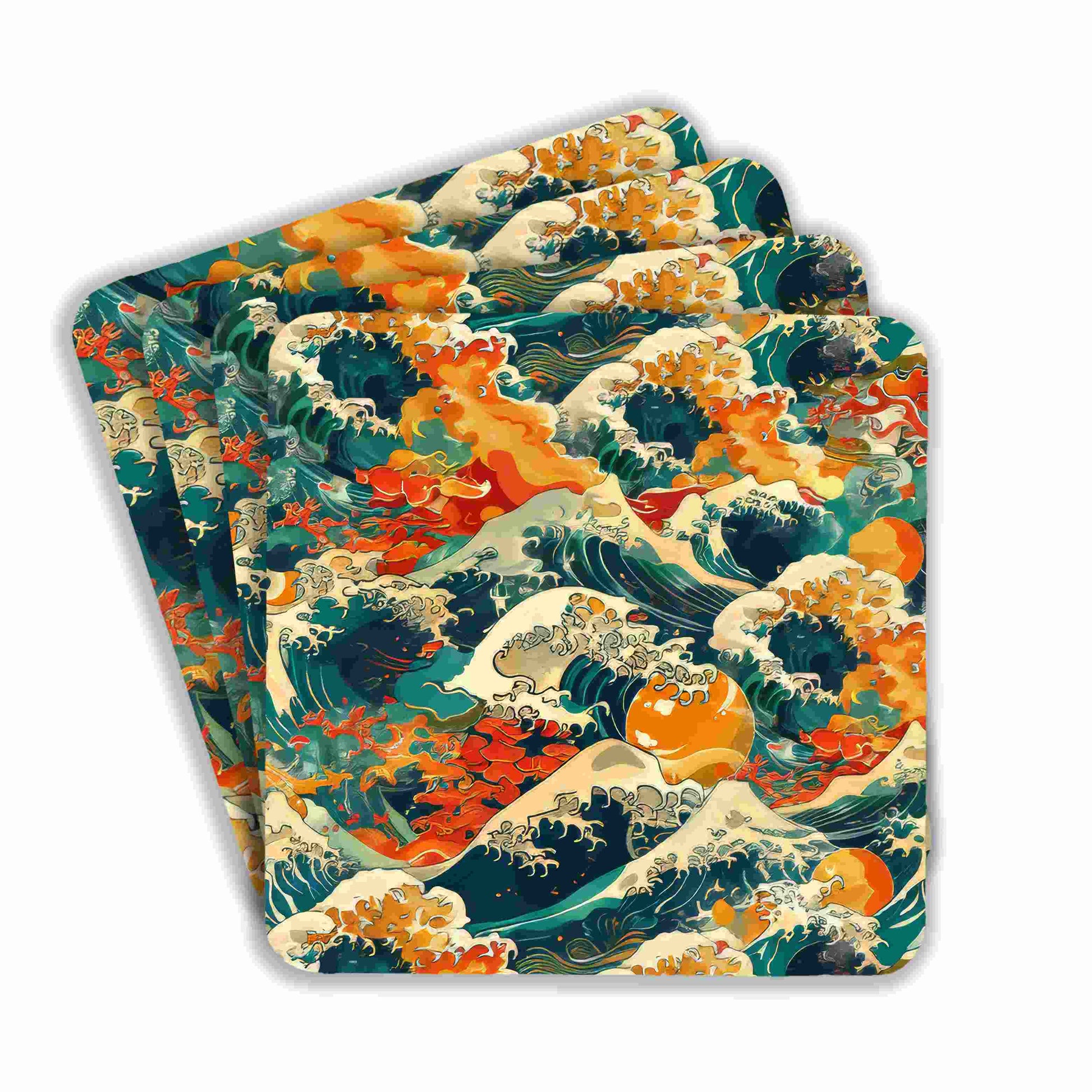 This Colorful Ocean Waves coaster set brings vivid energy and movement, a sharp choice for men’s decor with edge.