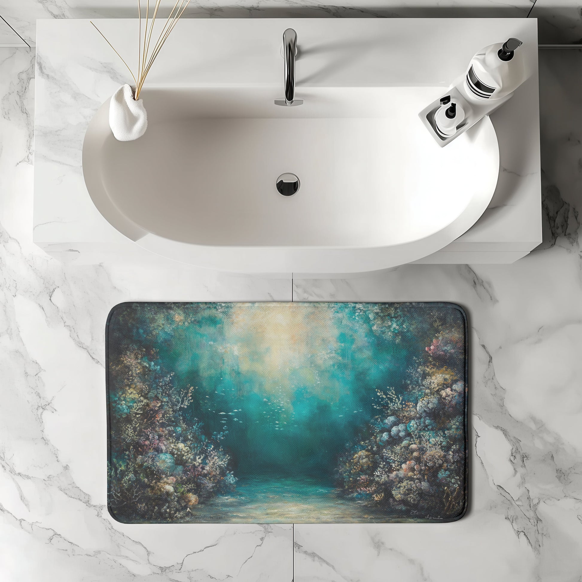 This Coral Reef bath mat channels deep-sea vibes with a rugged edge, perfect for men’s bathrooms. The masculine tones and organic forms blend into a moody, aquatic statement piece. It’s bold, elemental decor that grounds your space in strength and motion.