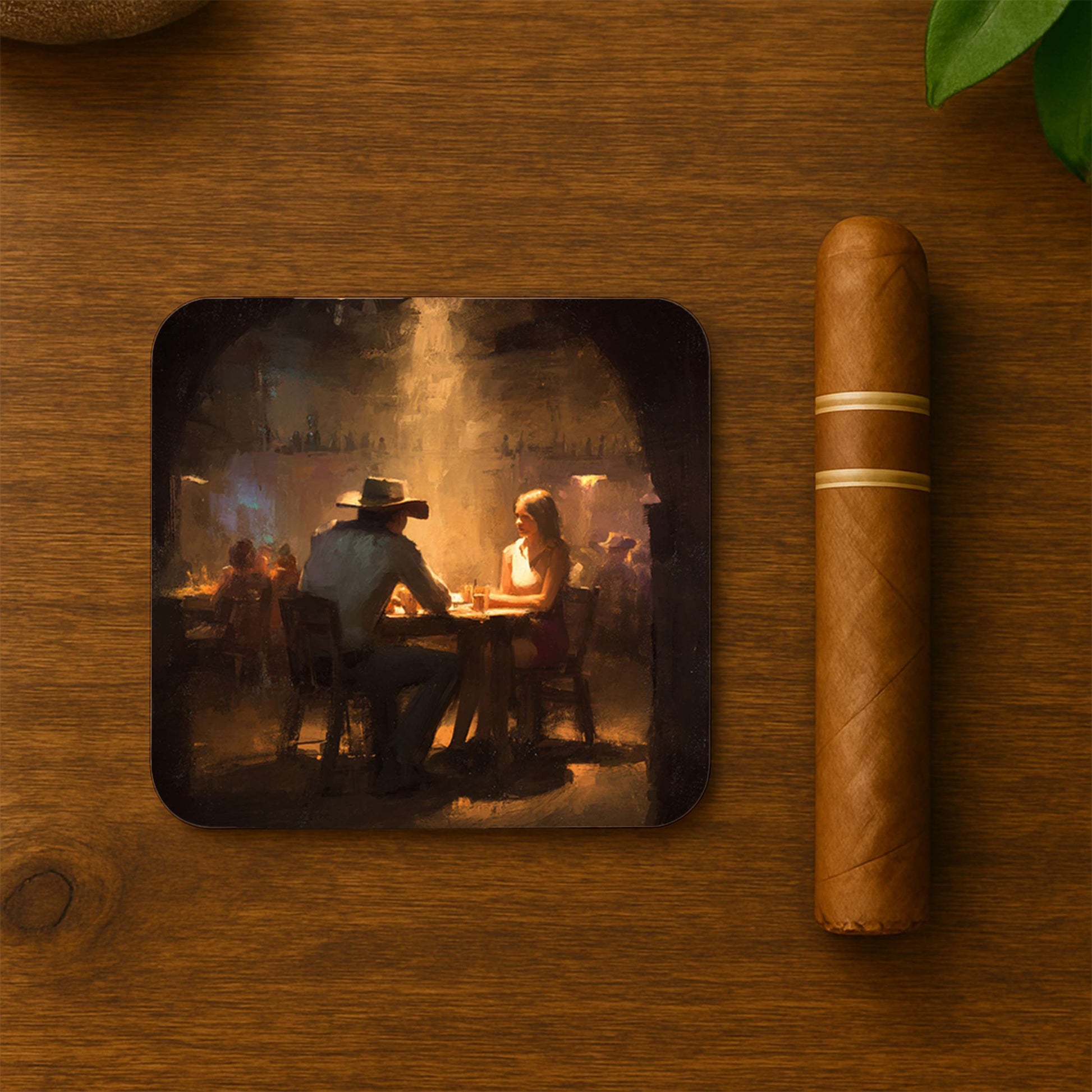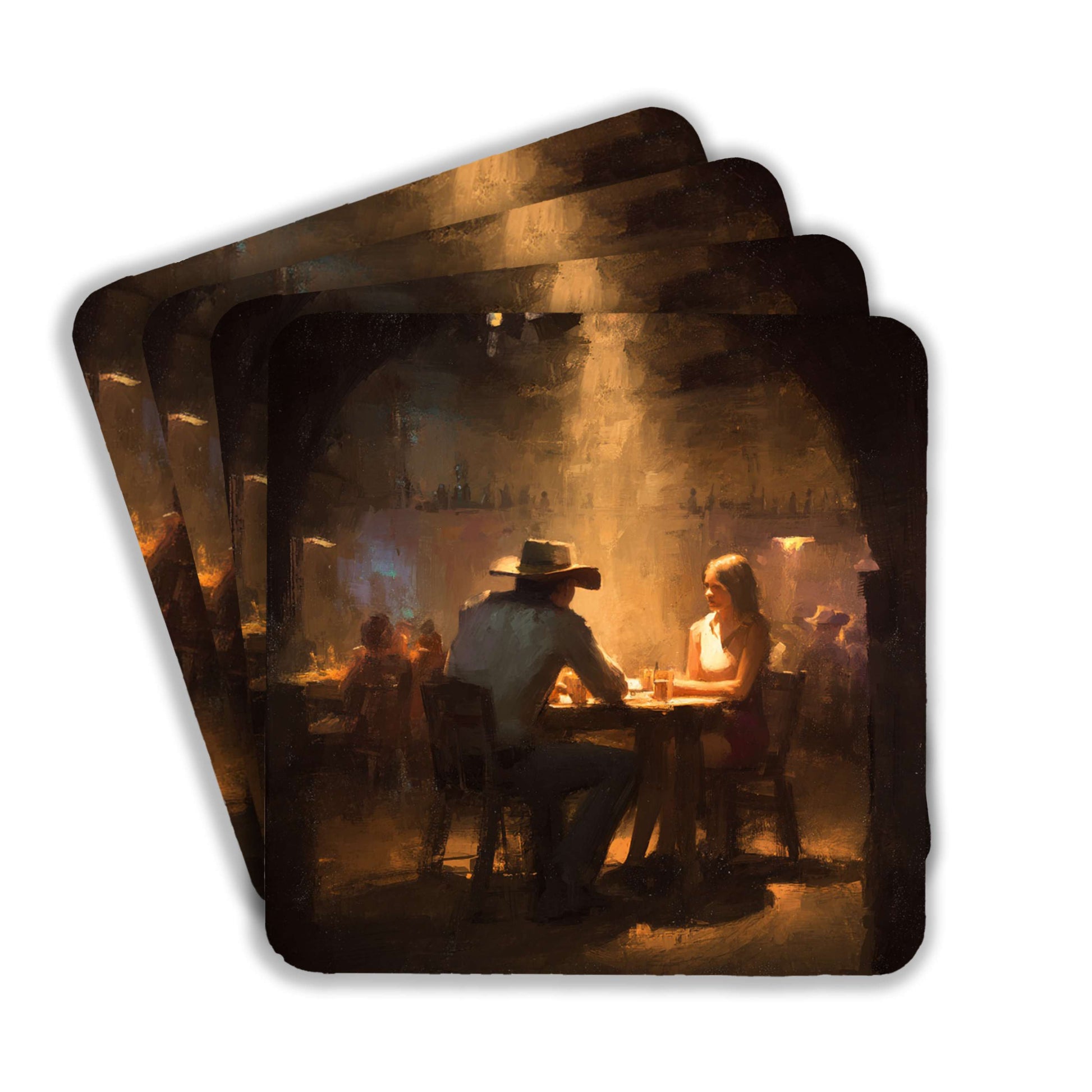 This Cowboy And Woman At A Table coaster set delivers Western grit and depth, decor for men who live bold stories.