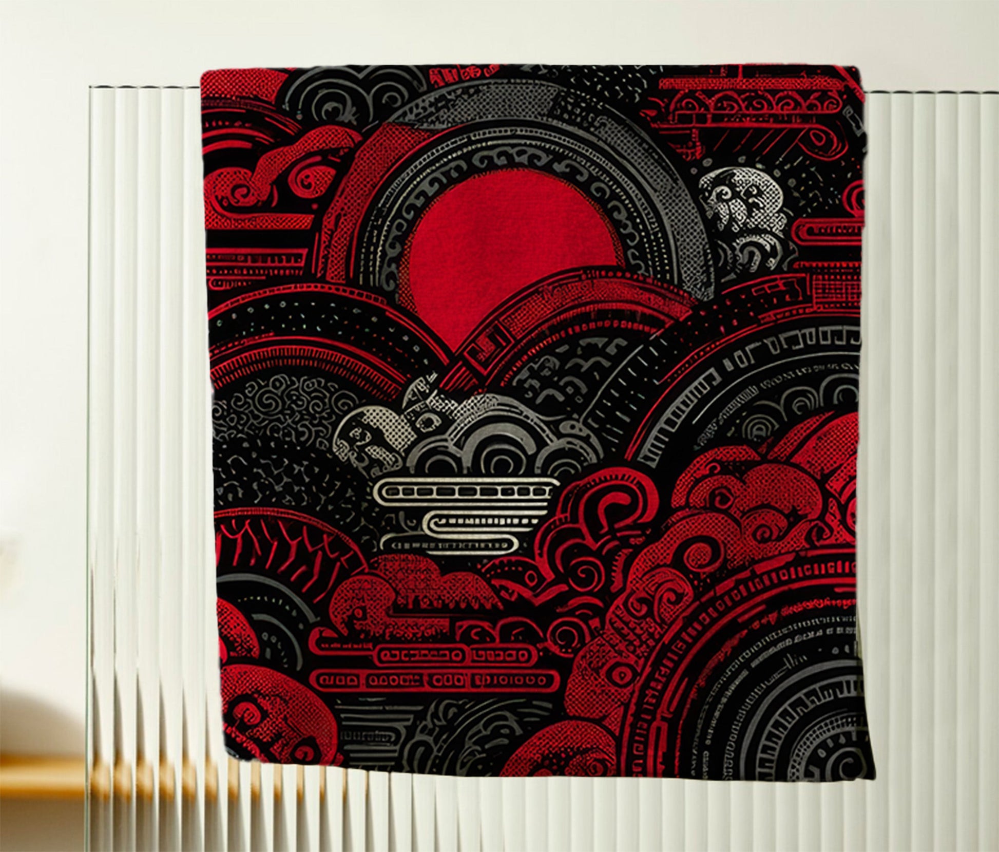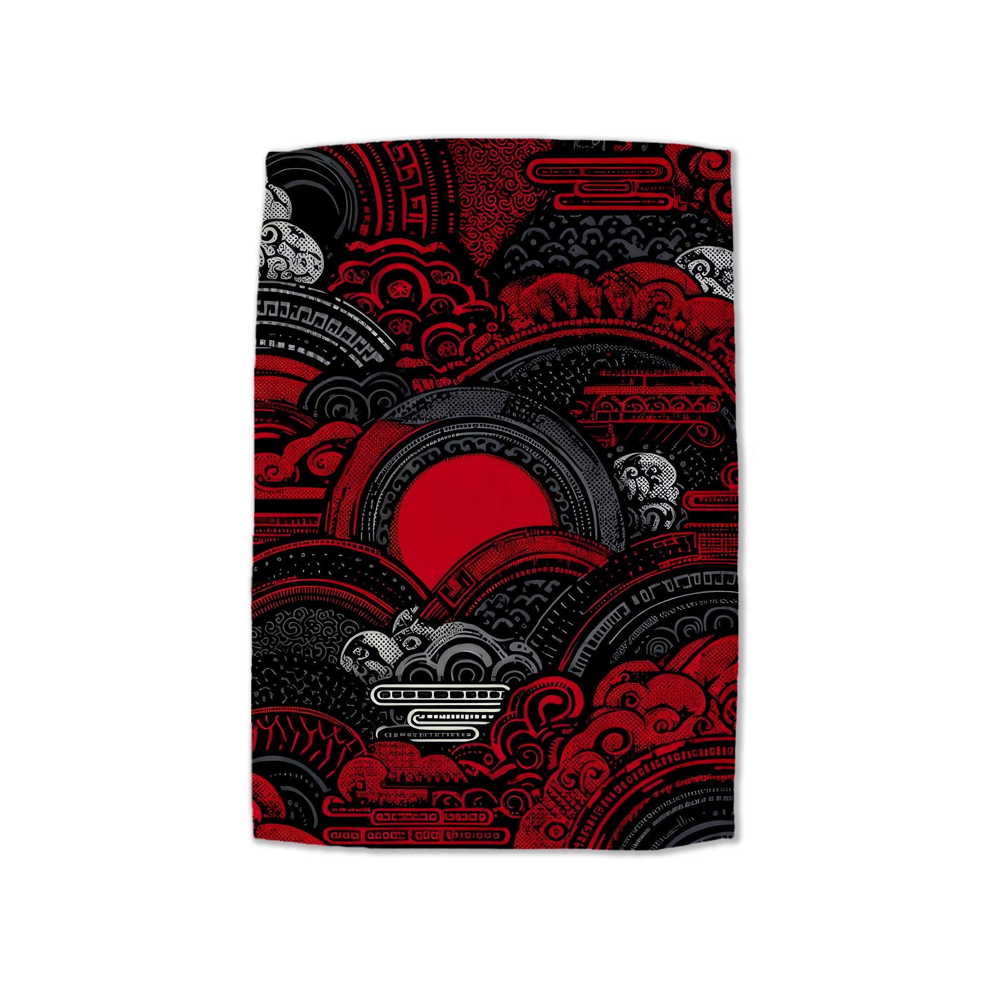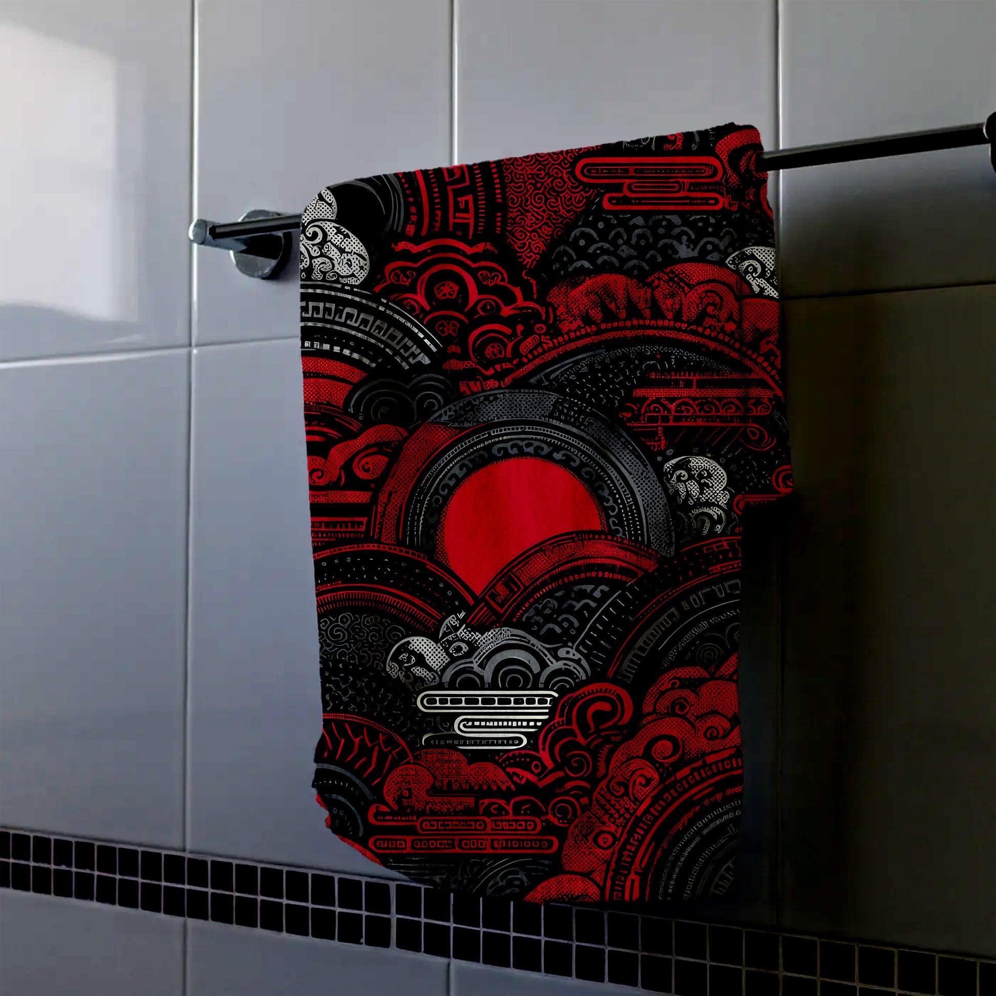 This Crimson Eclipse Sky hand towel captures dramatic celestial imagery, perfect for adding a bold statement to men's bathroom decor.