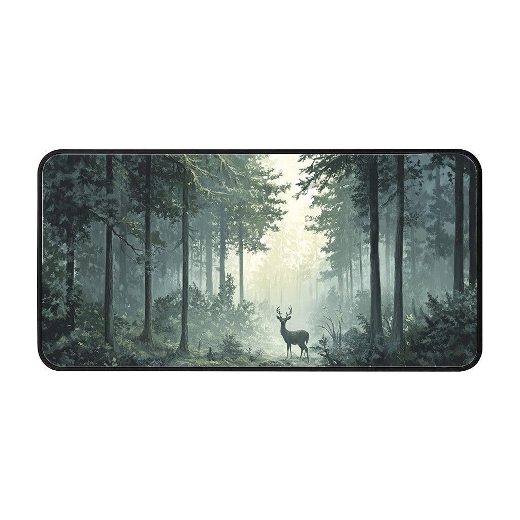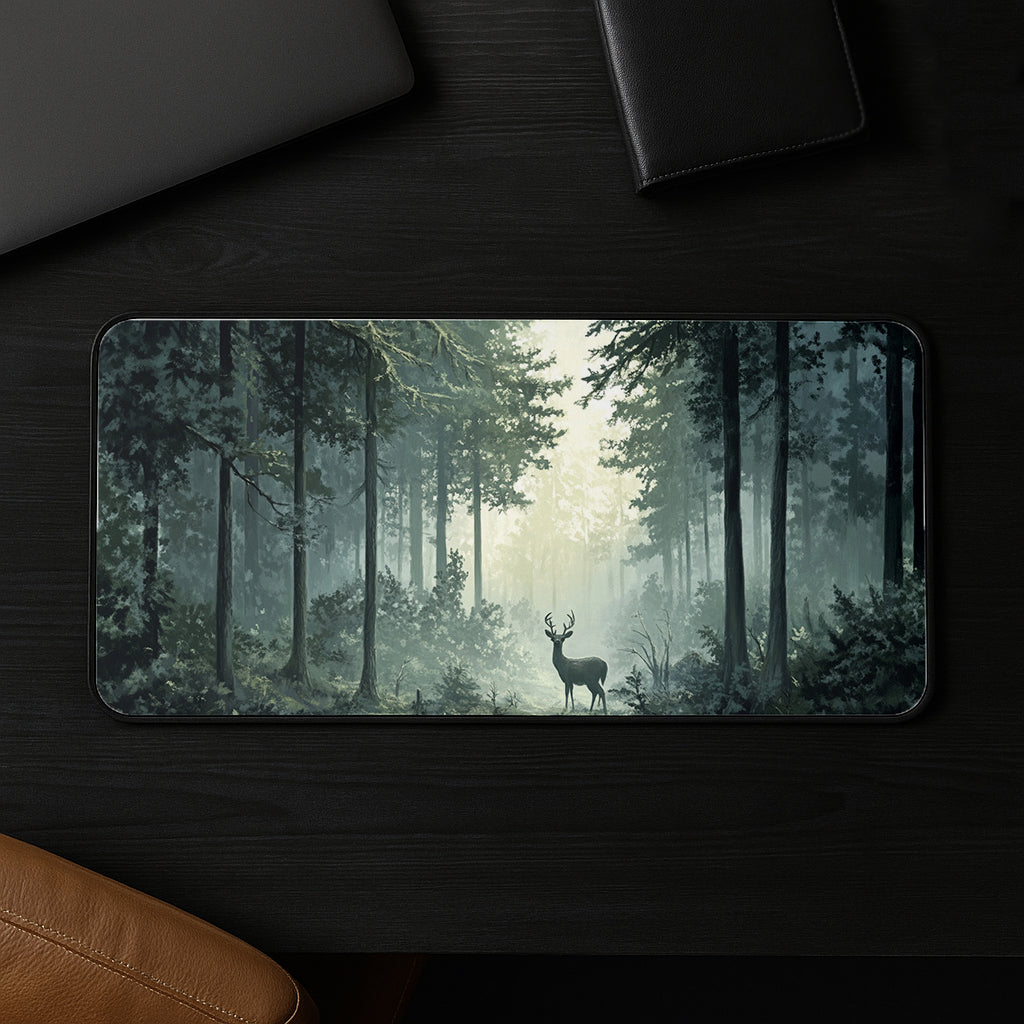 This Deer In Misty Forest desk mat captures earthy, masculine calm for a nature-rich decor for men.