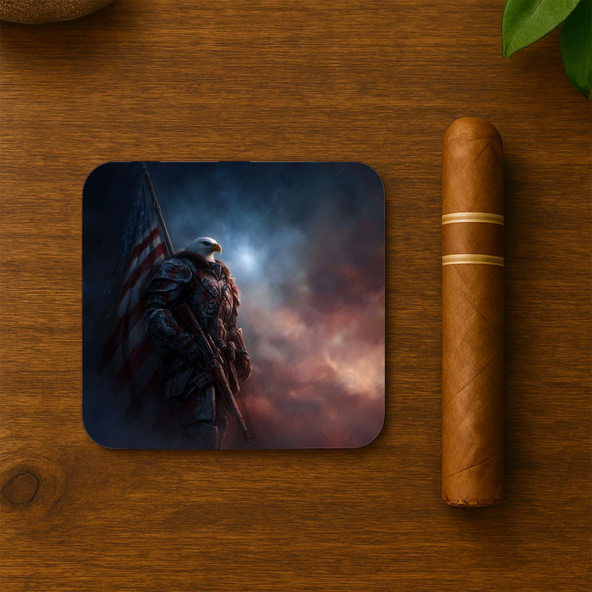 This Eagle Sentinel Warrior coaster set radiates fierce determination, masculine decor for bold spaces.