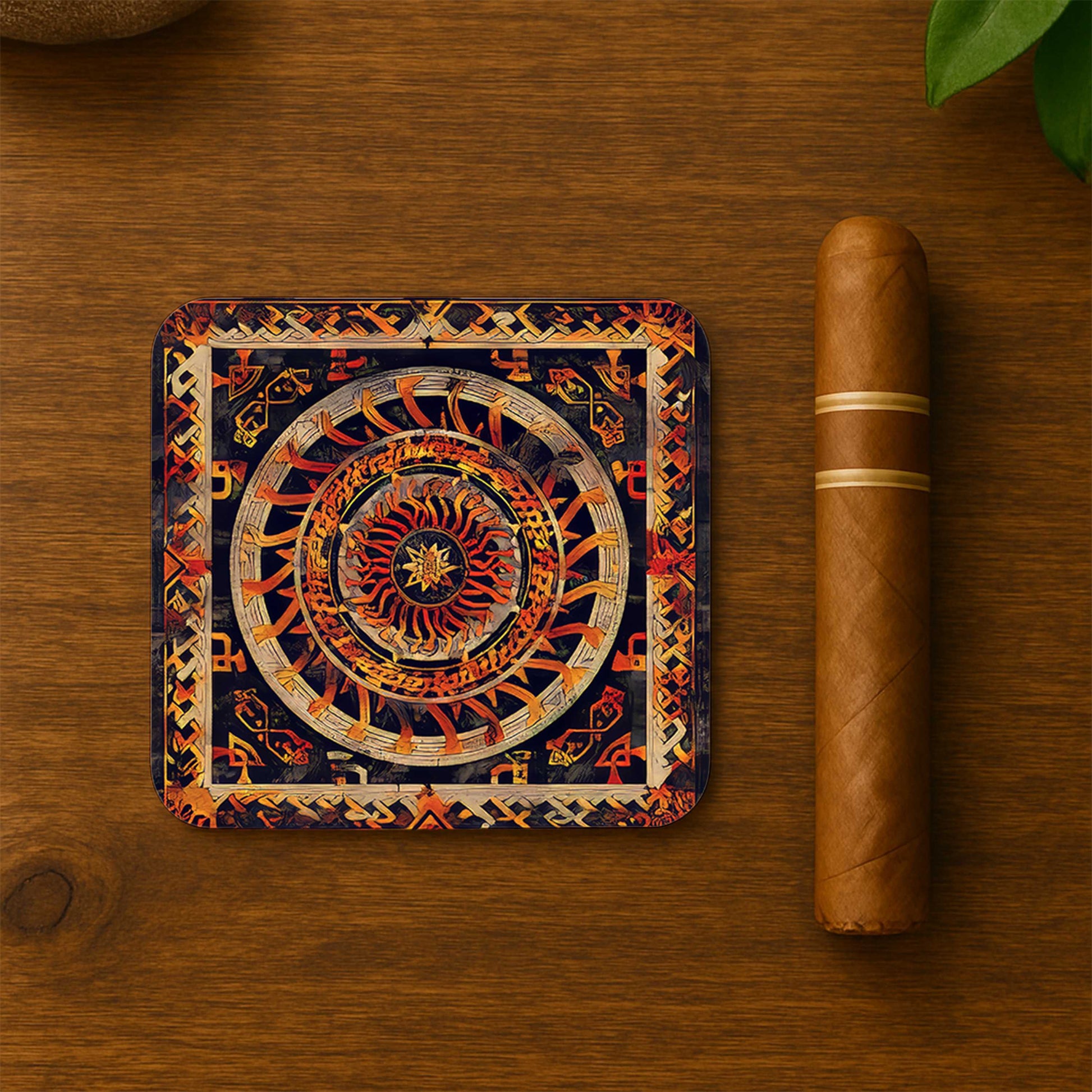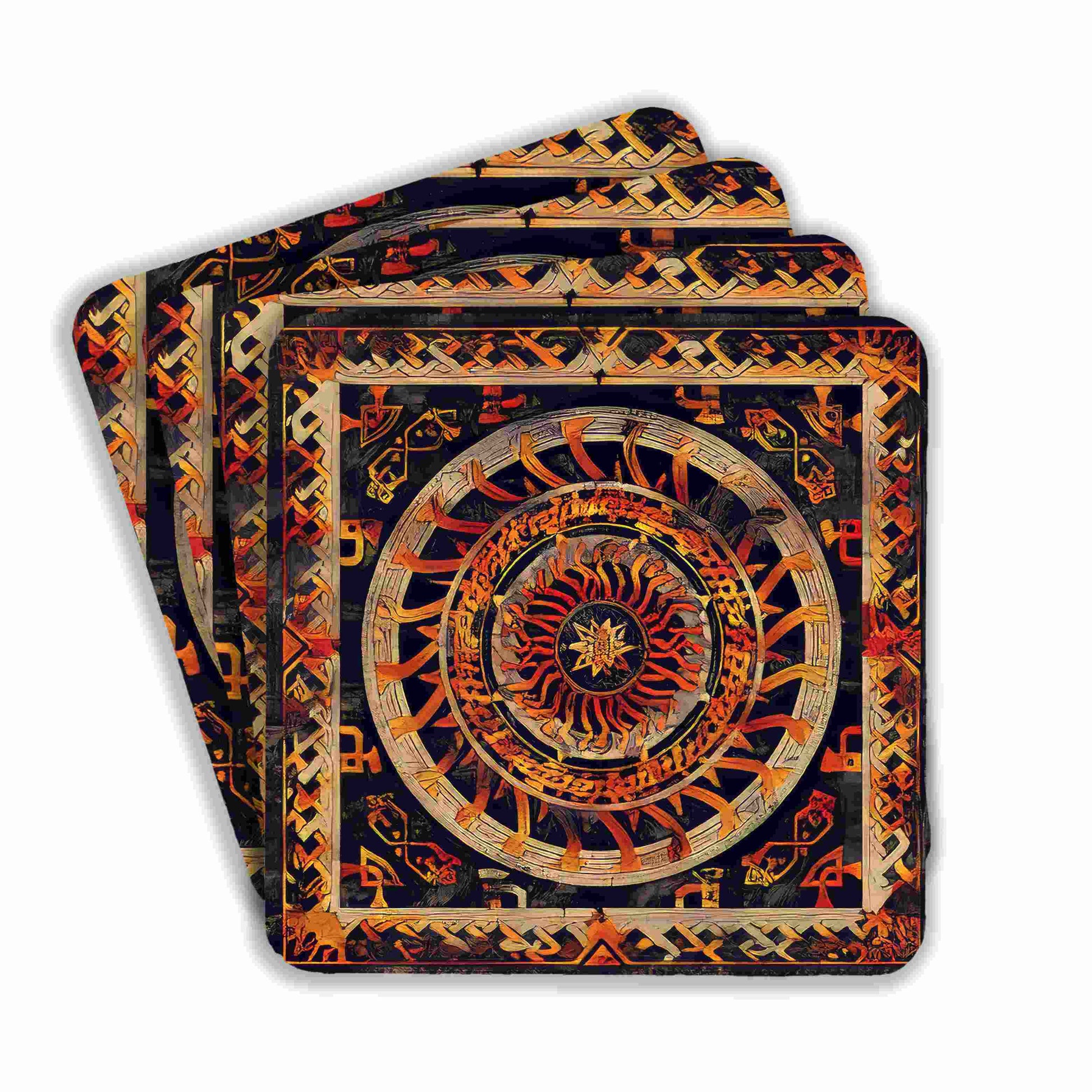 This Fiery Mandala Tapestry coaster set delivers intense energy, powerful decor for commanding interiors.