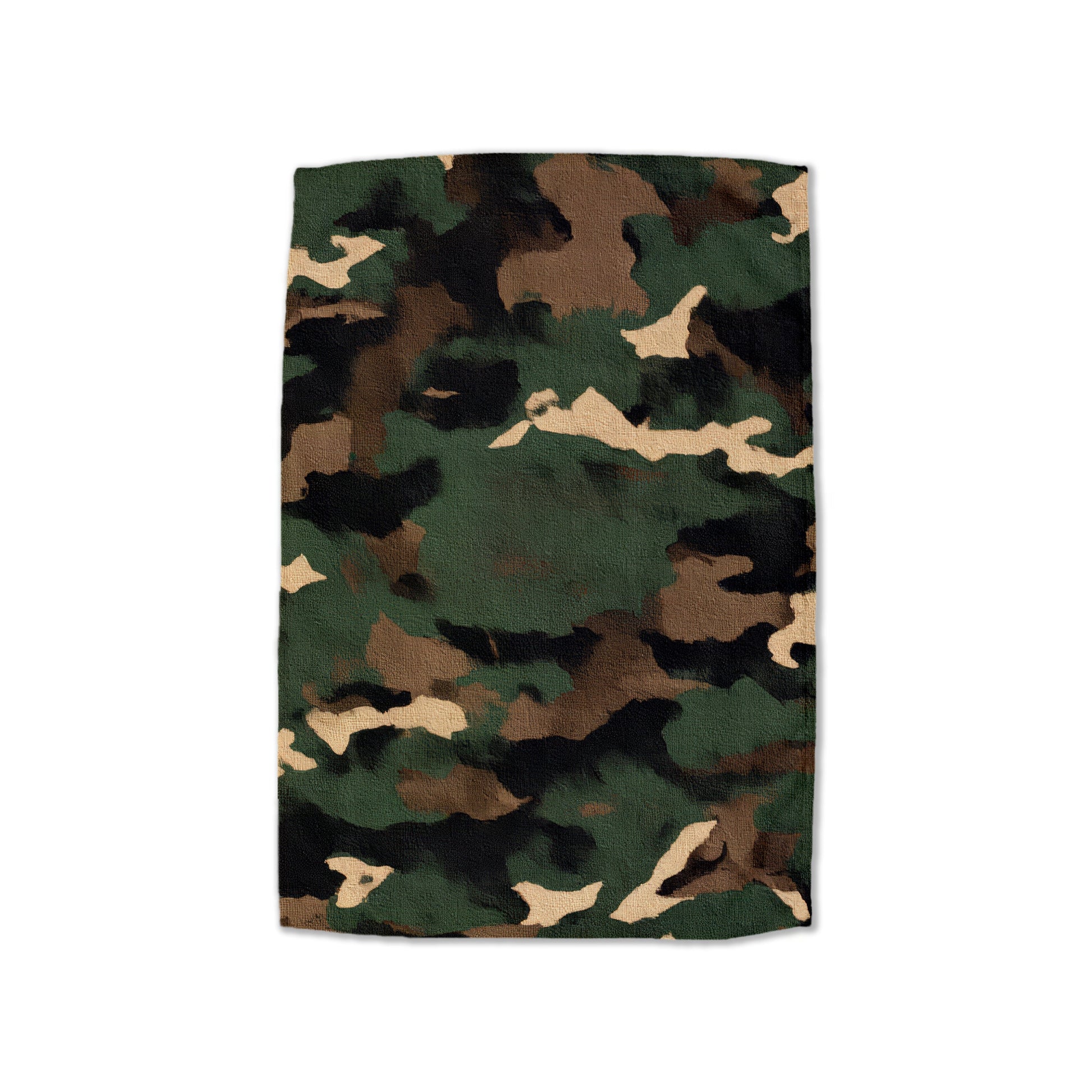 This Forest Camo Pattern hand towel offers classic camouflage, perfect for masculine decor in men's bathrooms or outdoor-themed spaces.