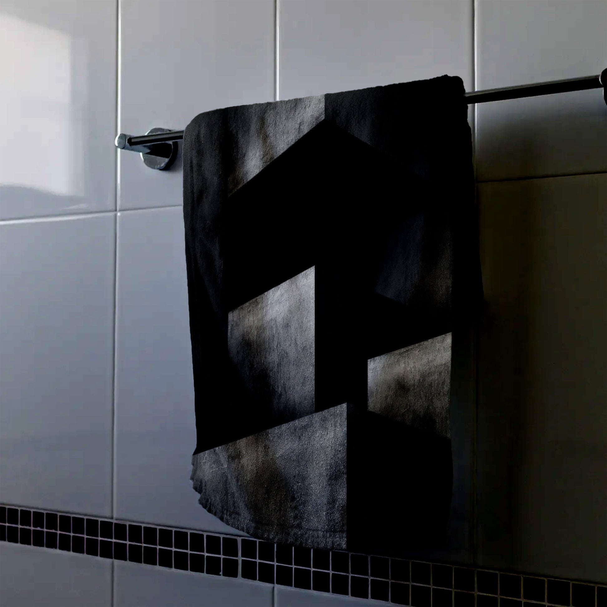 This Geometric Shadows hand towel introduces bold contrasts and shapes, enhancing masculine decor with a contemporary edge.