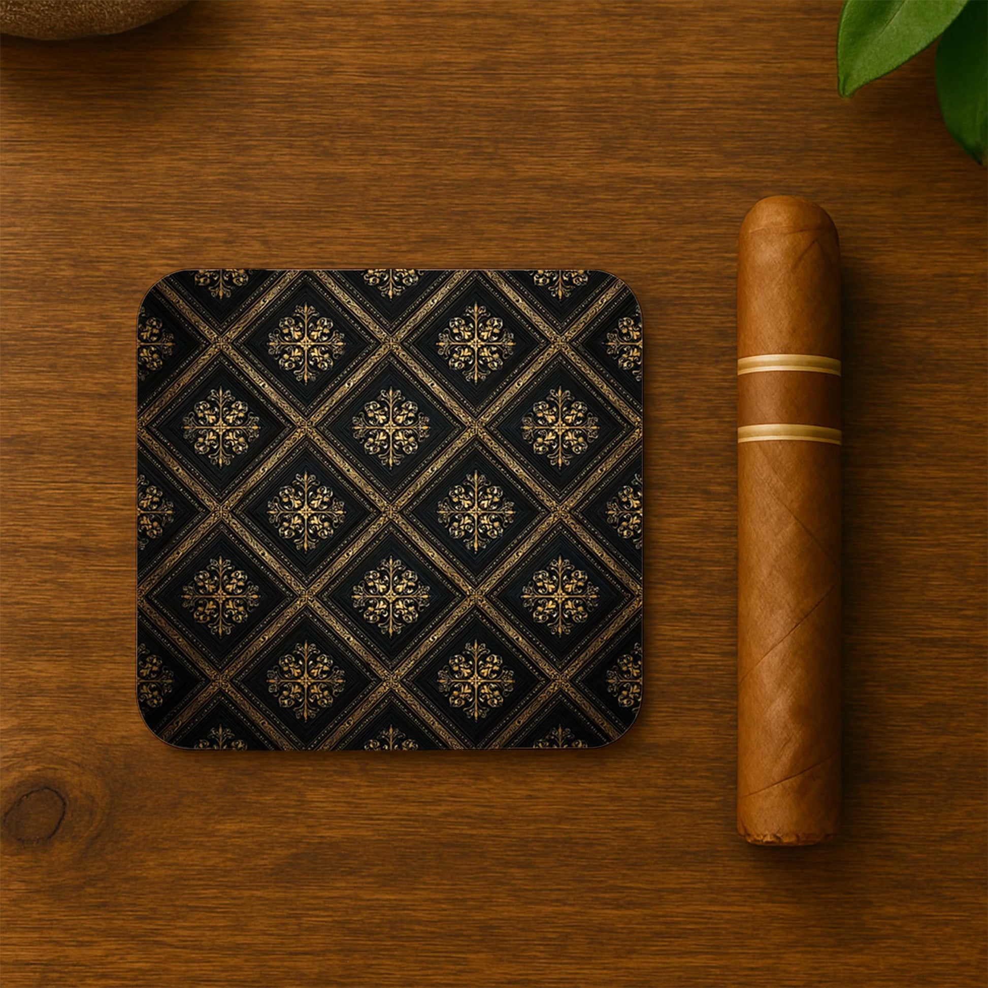 This Golden Floral Pattern coaster set blends luxe and strength—masculine decor for upscale interiors.