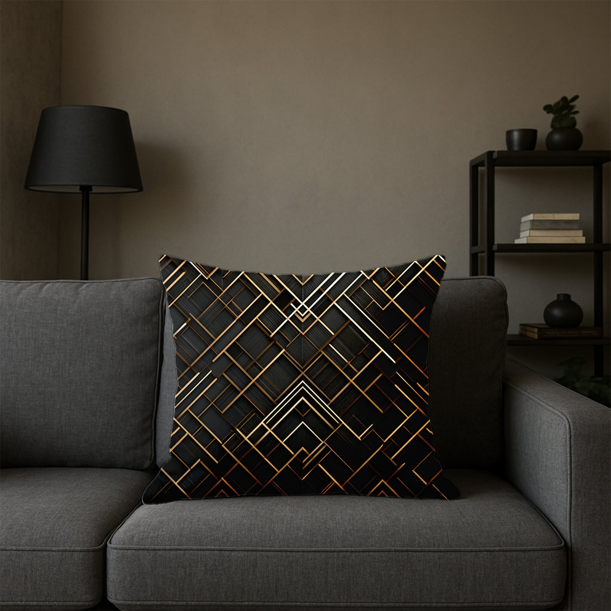 This Golden Geometric Maze Pillow adds luxury and sharp style to bold decor for men.