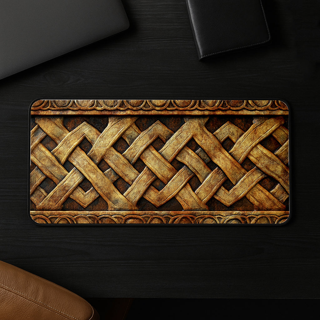 This Golden Knotwork Design desk mat brings ancient, masculine charm and artistic decor for guys.