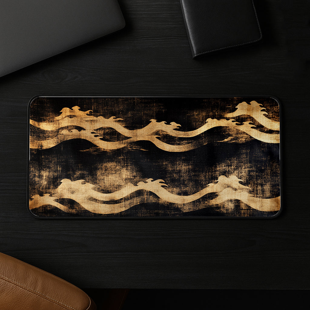 This Golden Waves On Black desk mat merges luxury and power for a masculine, decor-for-men workspace.