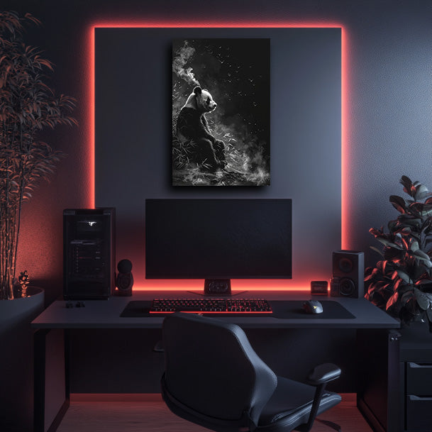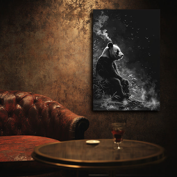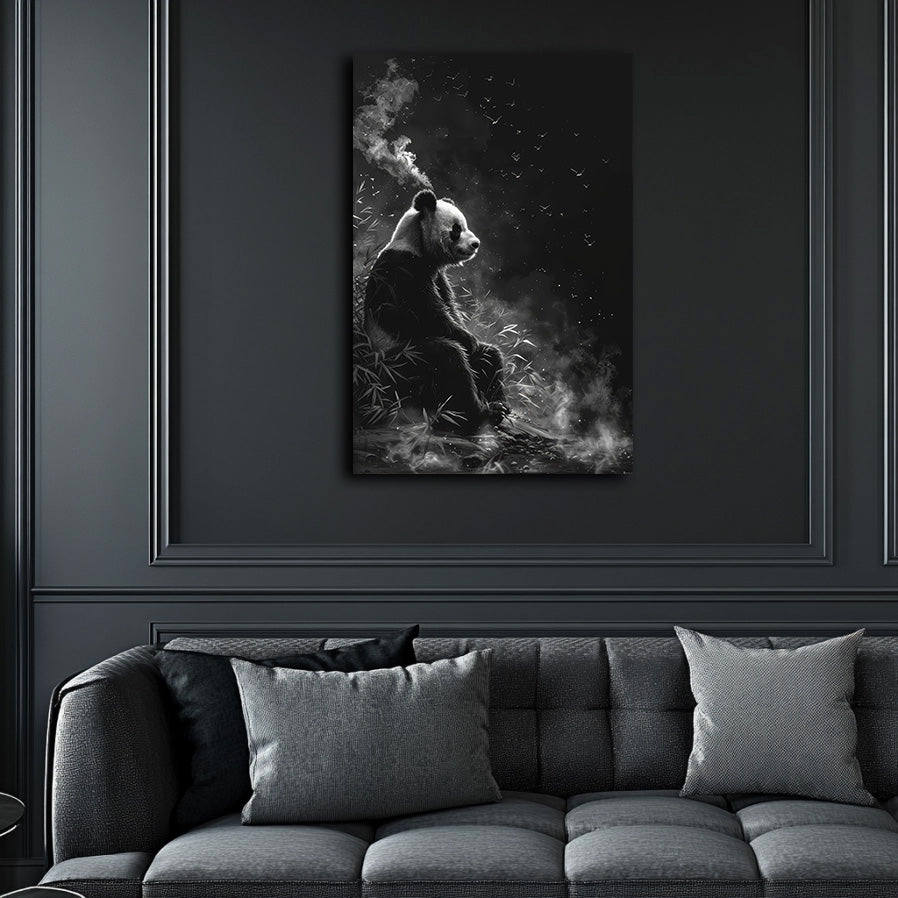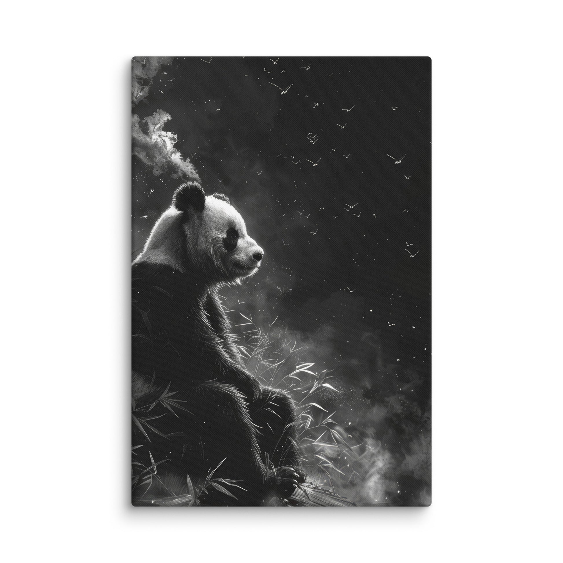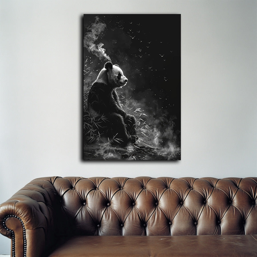 A solitary panda gazes into the night, shrouded in an aura of mystery that transcends its usual gentle image. This masculine wall decor brings a calm, reflective mood to any room, merging nature's strength with quiet introspection.