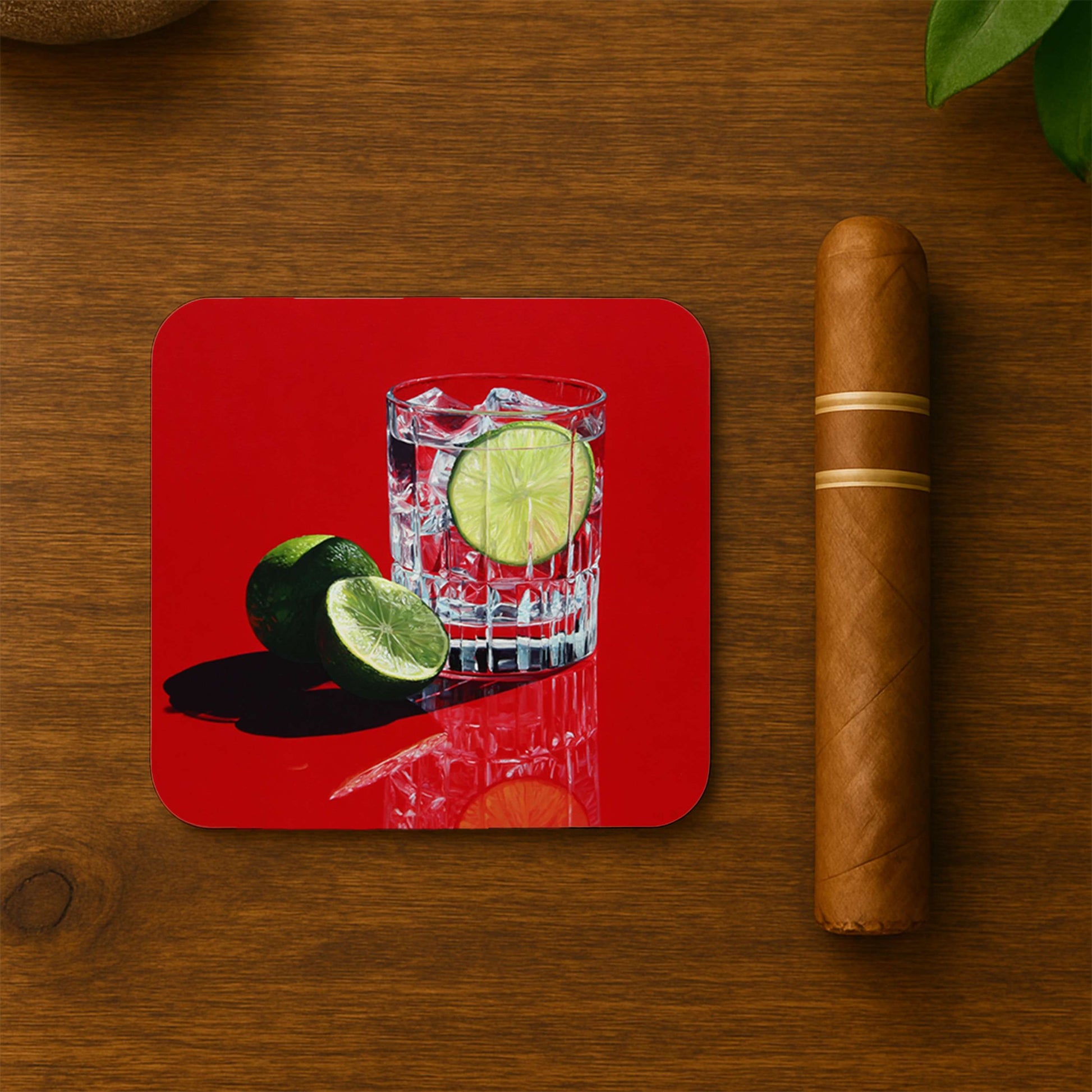 This Lime On Red Background coaster set delivers sharp contrast—bold decor for energetic men’s spaces.
