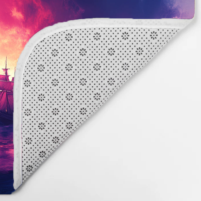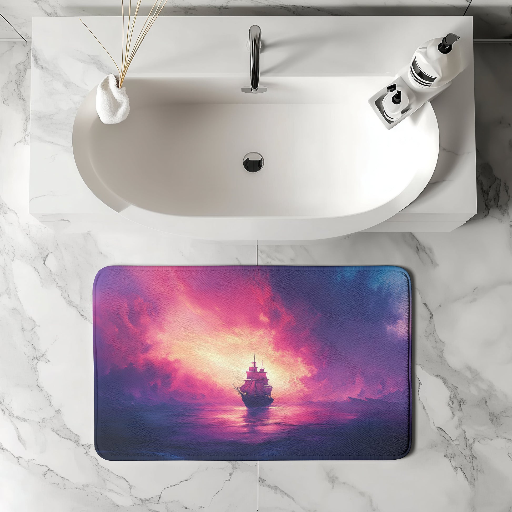 This Lone Ship bath mat sails solo with strength and style. The masculine design evokes adventure and self-reliance—perfect for men's bathrooms looking for moody, symbolic decor with purpose.