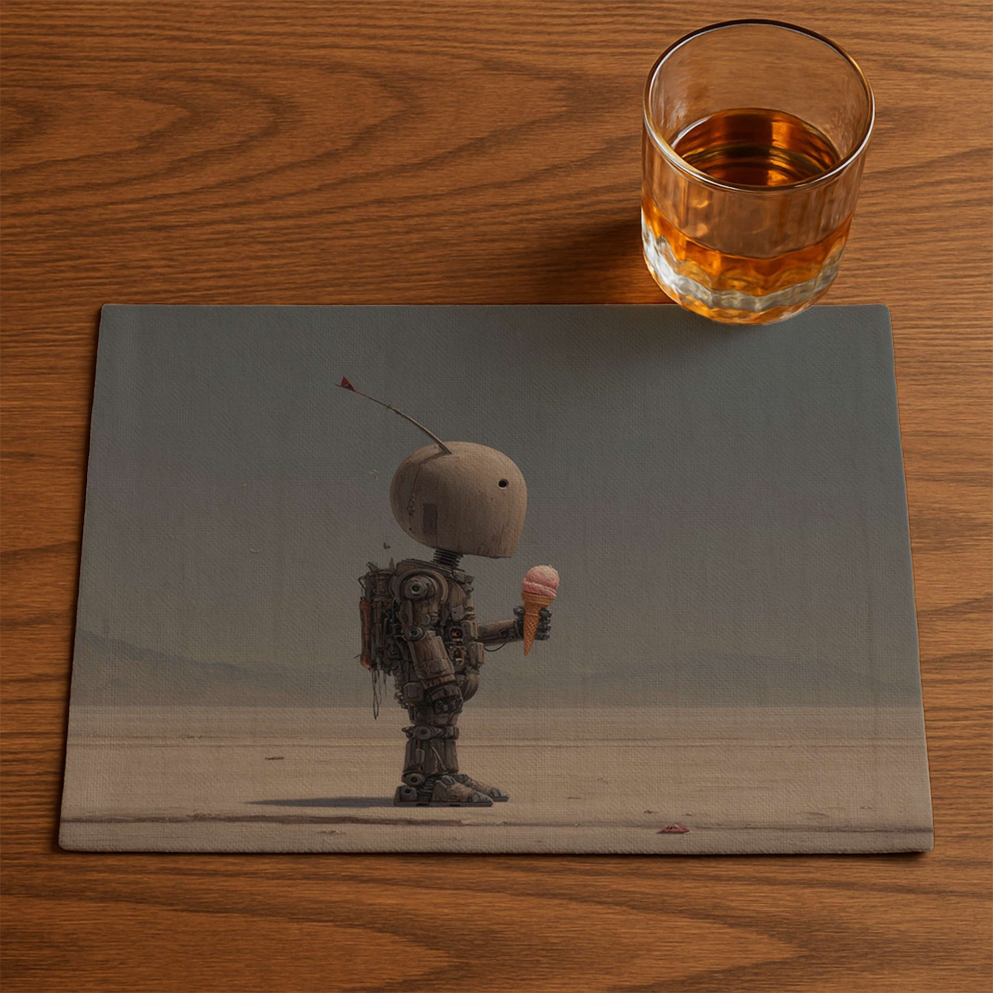 This Lonely Robot placemat offers futuristic decor for men, with a lone bot motif adding a cool, masculine sci‑fi mood.