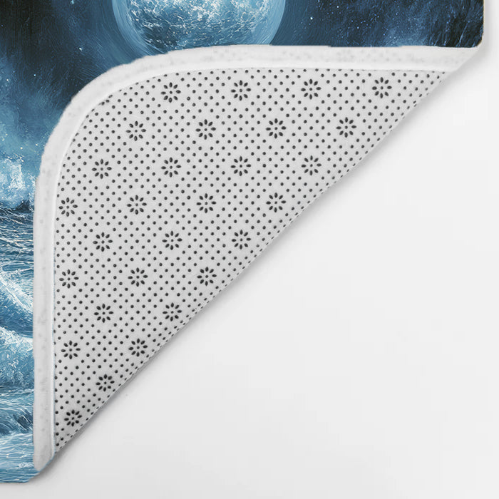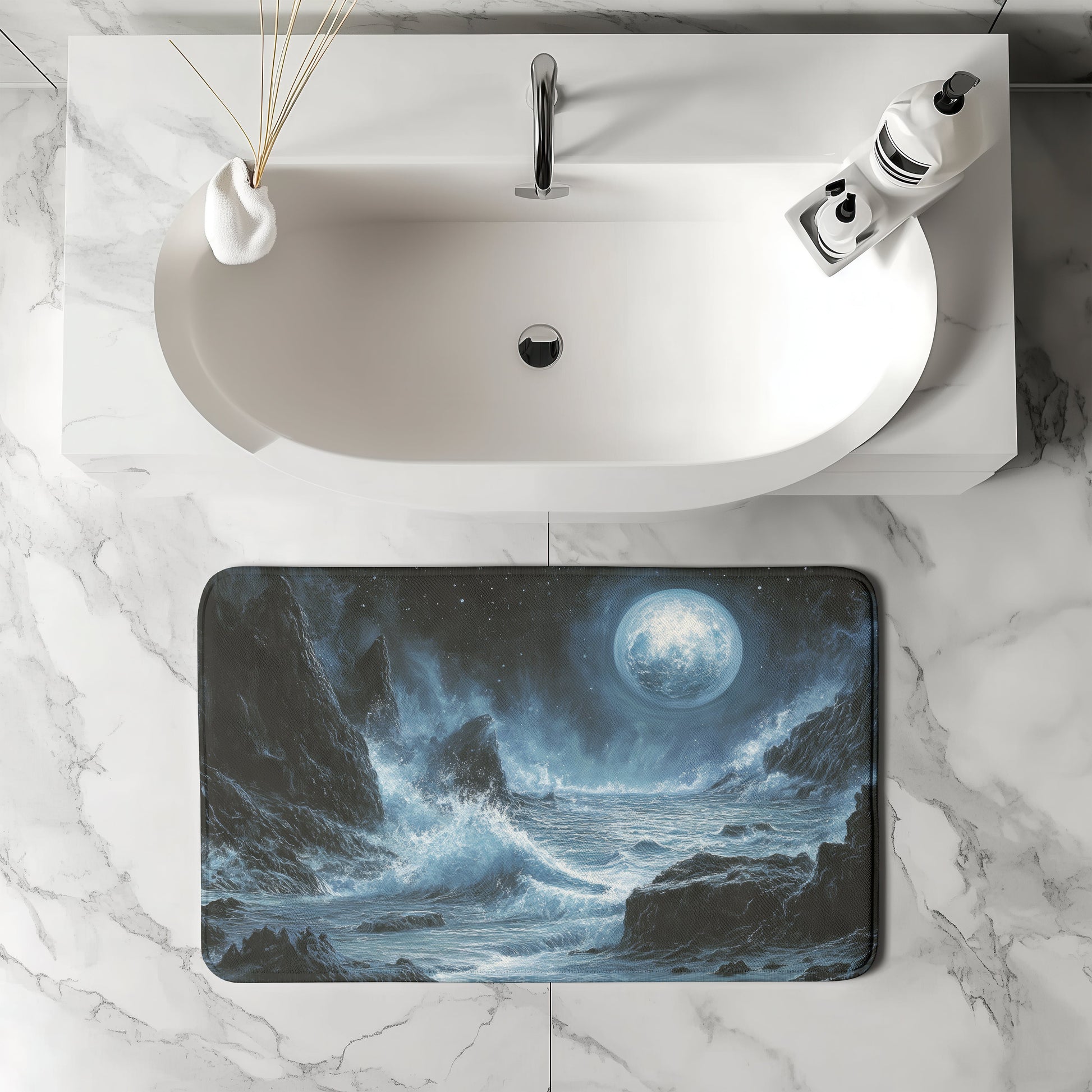 This Moonlit Sea bath mat casts a masculine glow with its moody, oceanic vibe. Ideal for men’s bathrooms, it evokes calm, solitude, and mystery, offering decor with emotional depth and style.