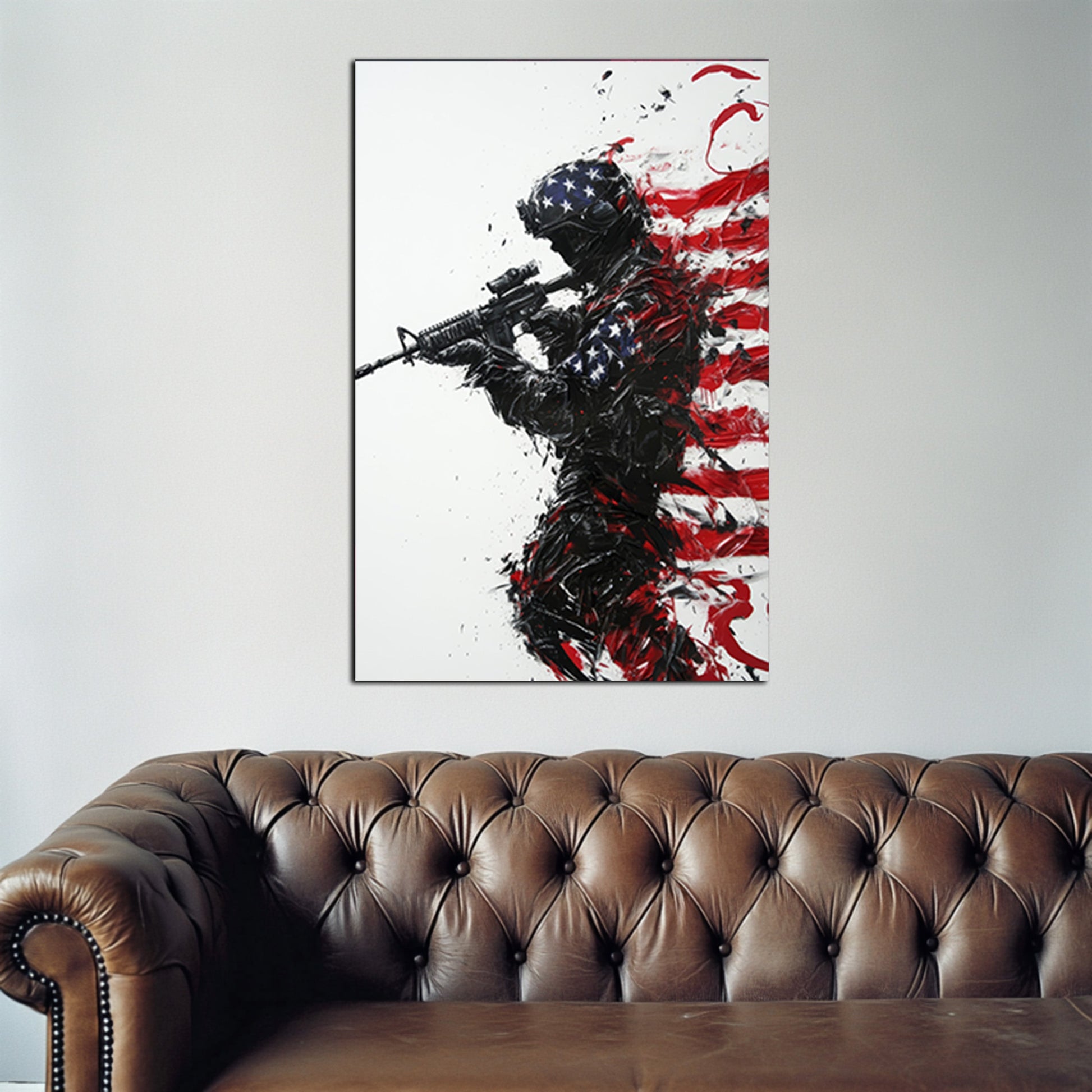 This Patriotic Soldier Silhouette Wall Art speaks of honor and valor, fitting masculine decor for patriotic homes.