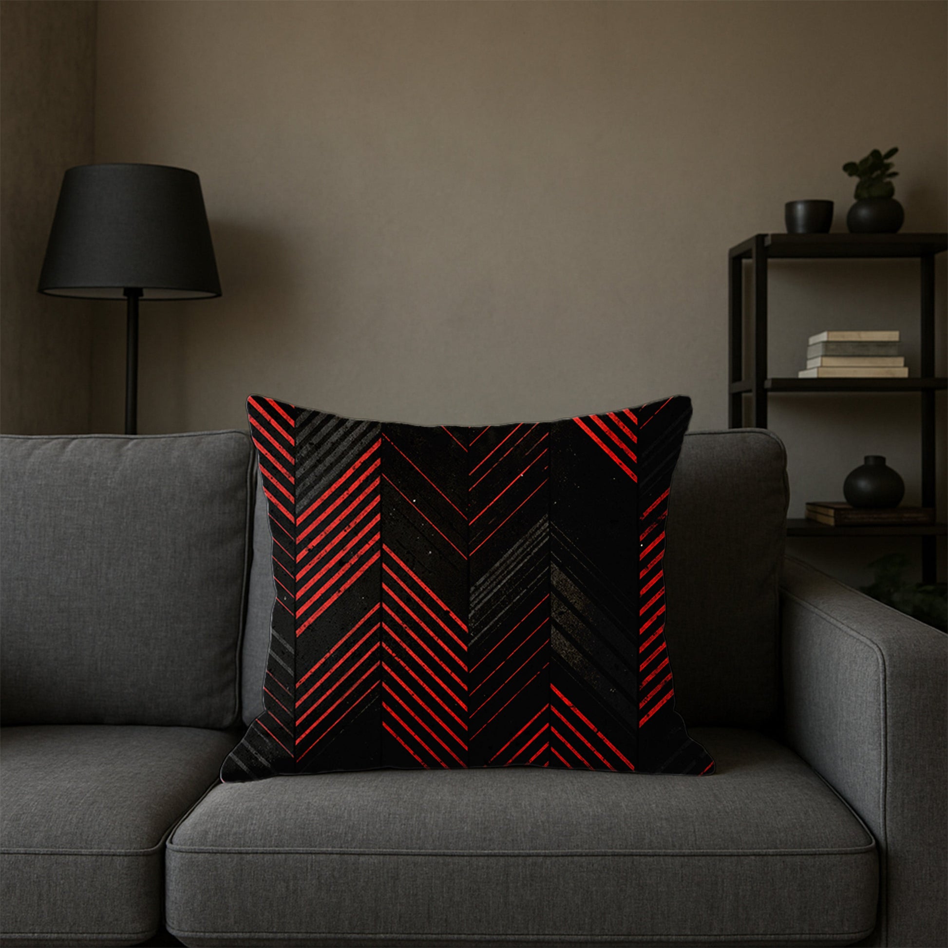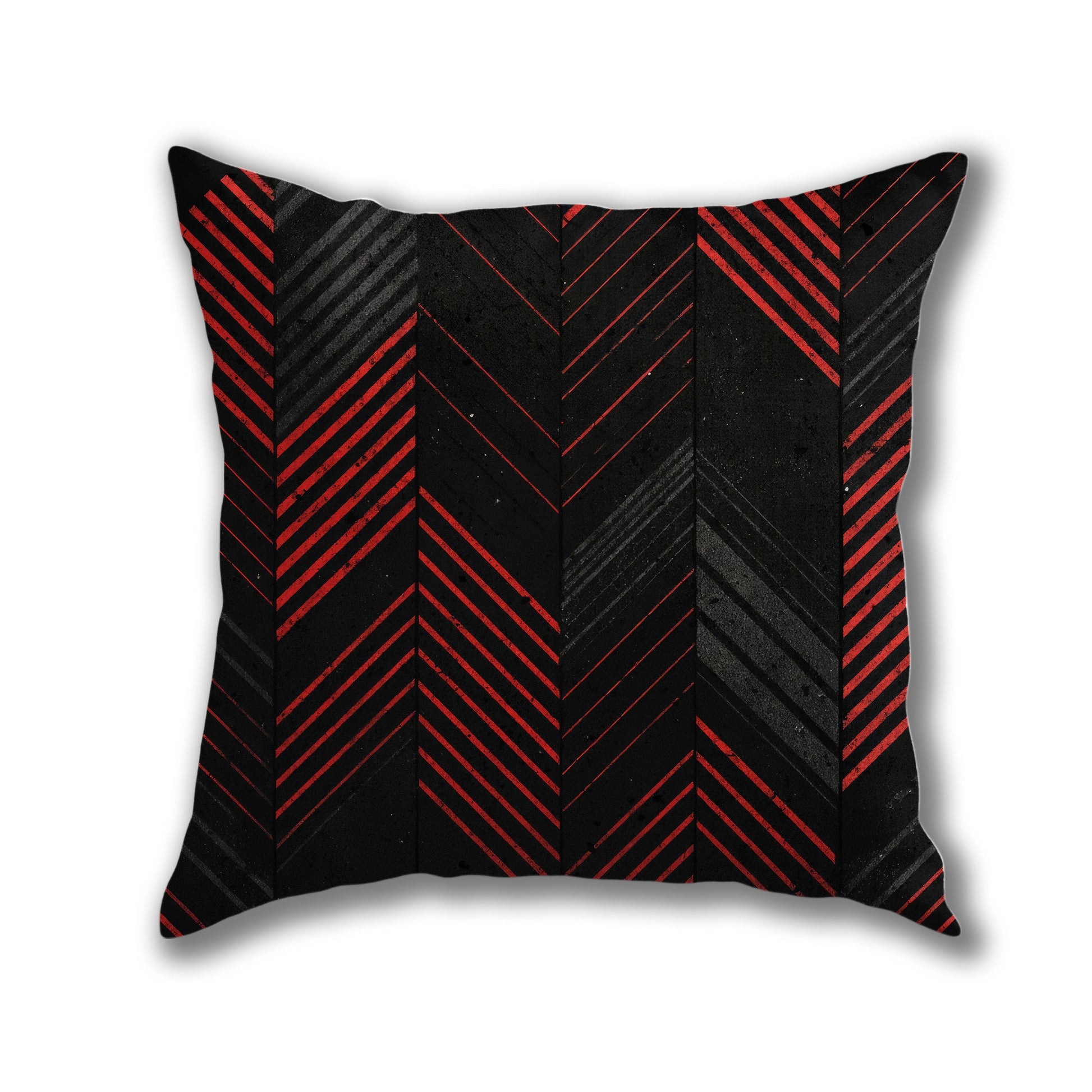 This Red And Black Chevron Pattern Pillow cuts bold lines into masculine decor for men.