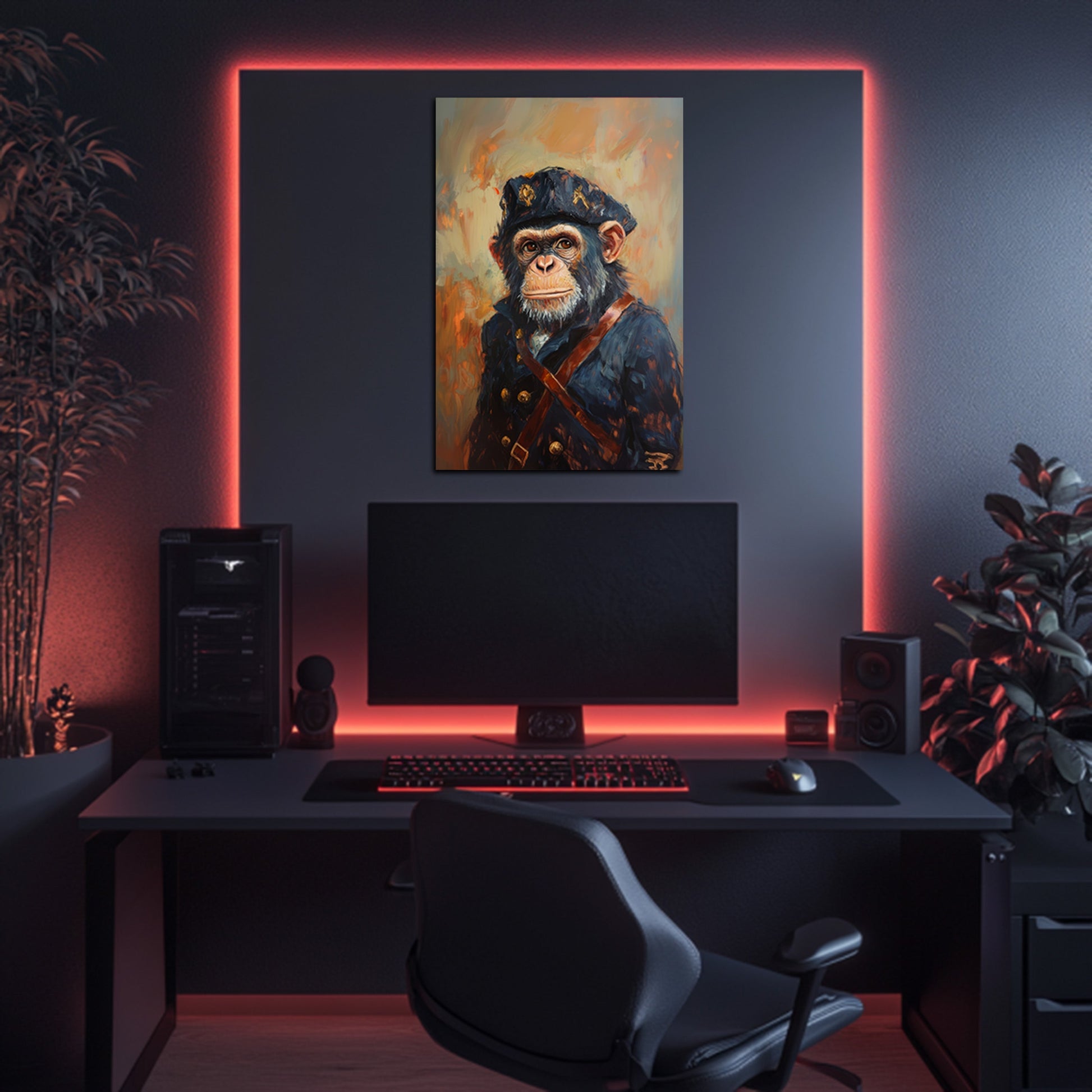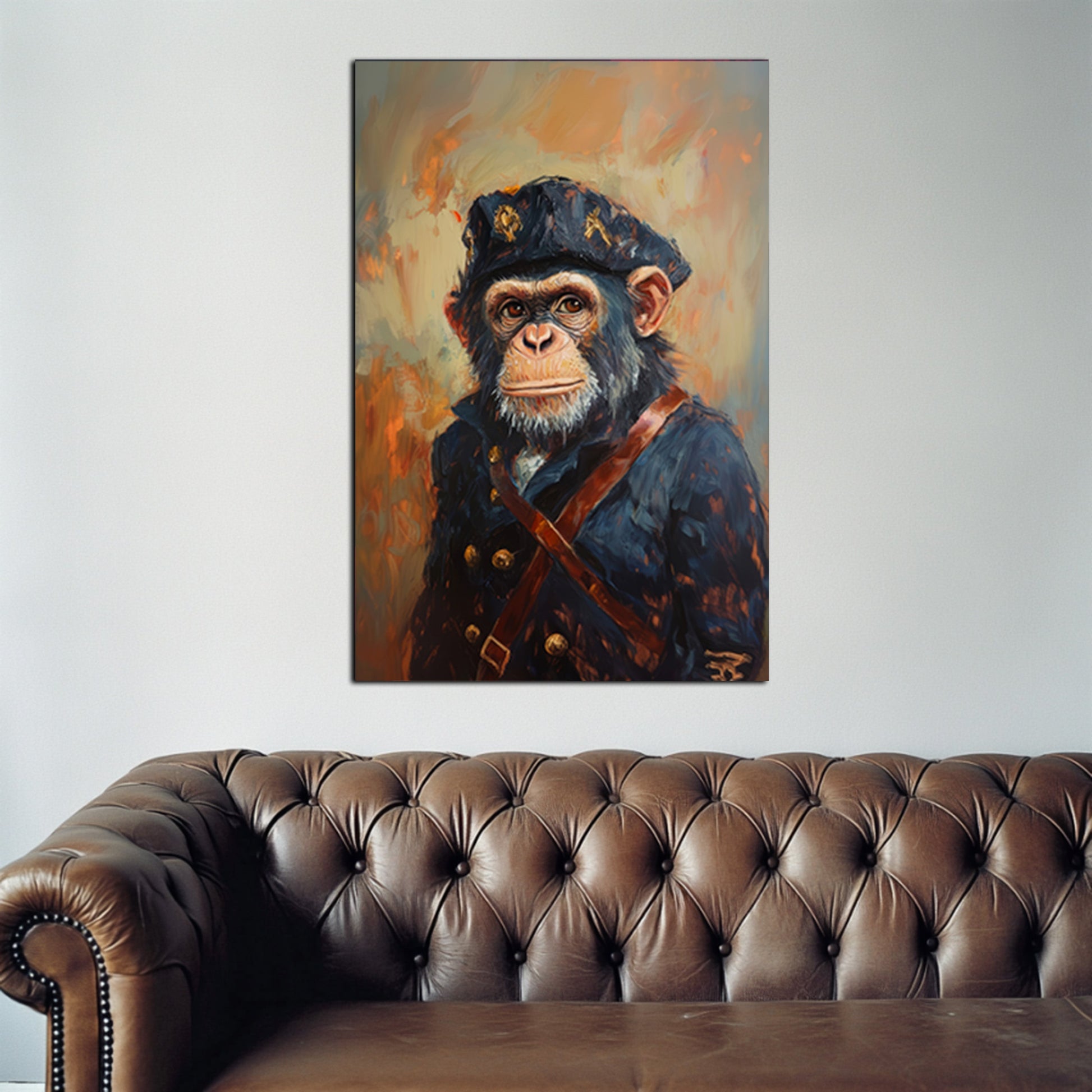 This Revolutionary Monkey In Uniform Wall Art adds surreal humor and history for eccentric masculine decor.