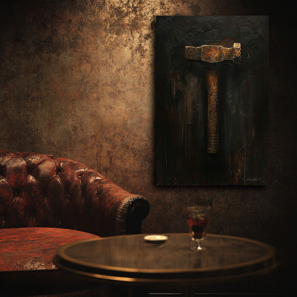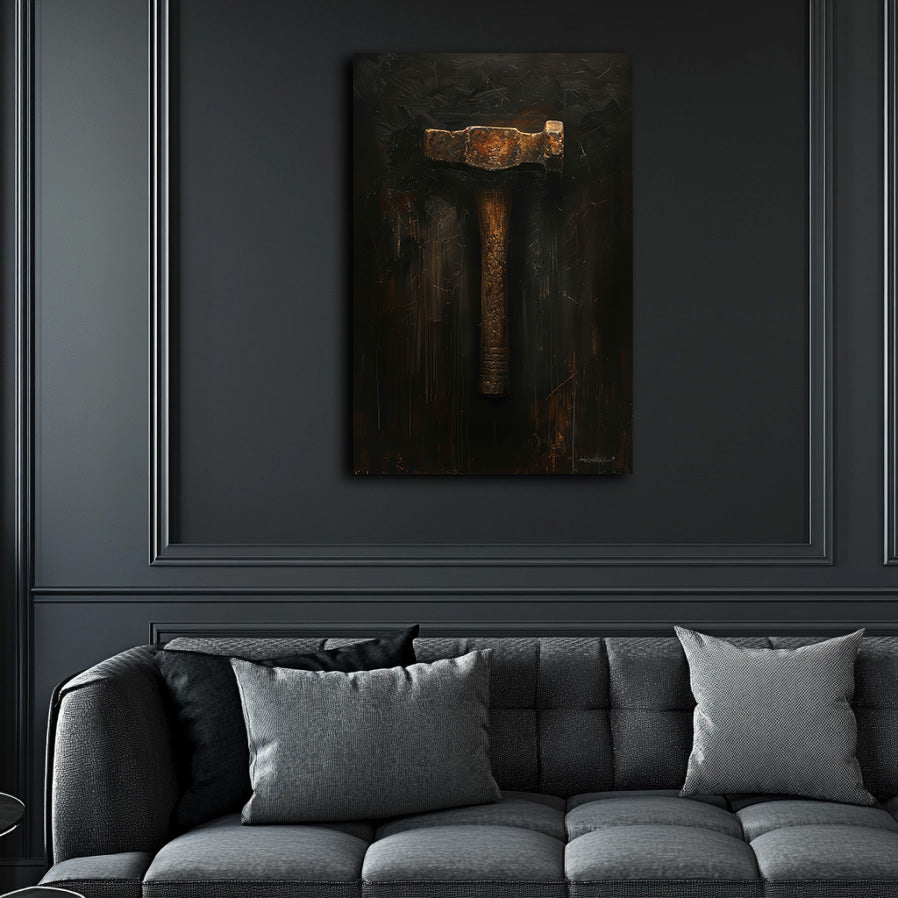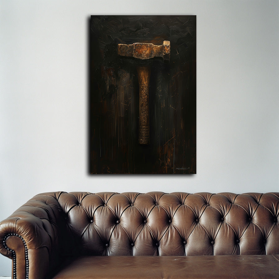 A weathered hammer stands alone in this masculine wall art, exuding the grit of hard work and resilience. This piece brings raw strength to any space, making it ideal wall decor for men who value timeless toughness.
