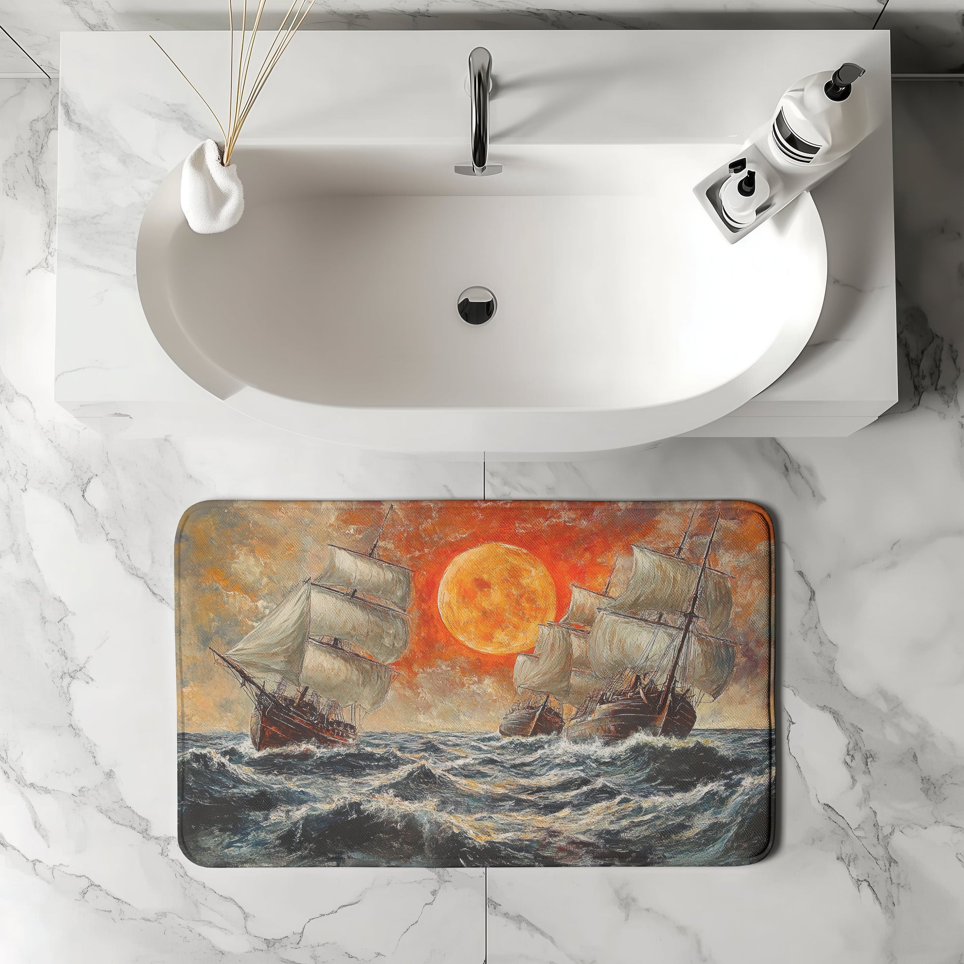 This Sailboats bath mat glides through your bathroom with quiet masculine grace. For men who value balance, freedom, and classic nautical style, it’s decor that sets a tone of thoughtful motion.