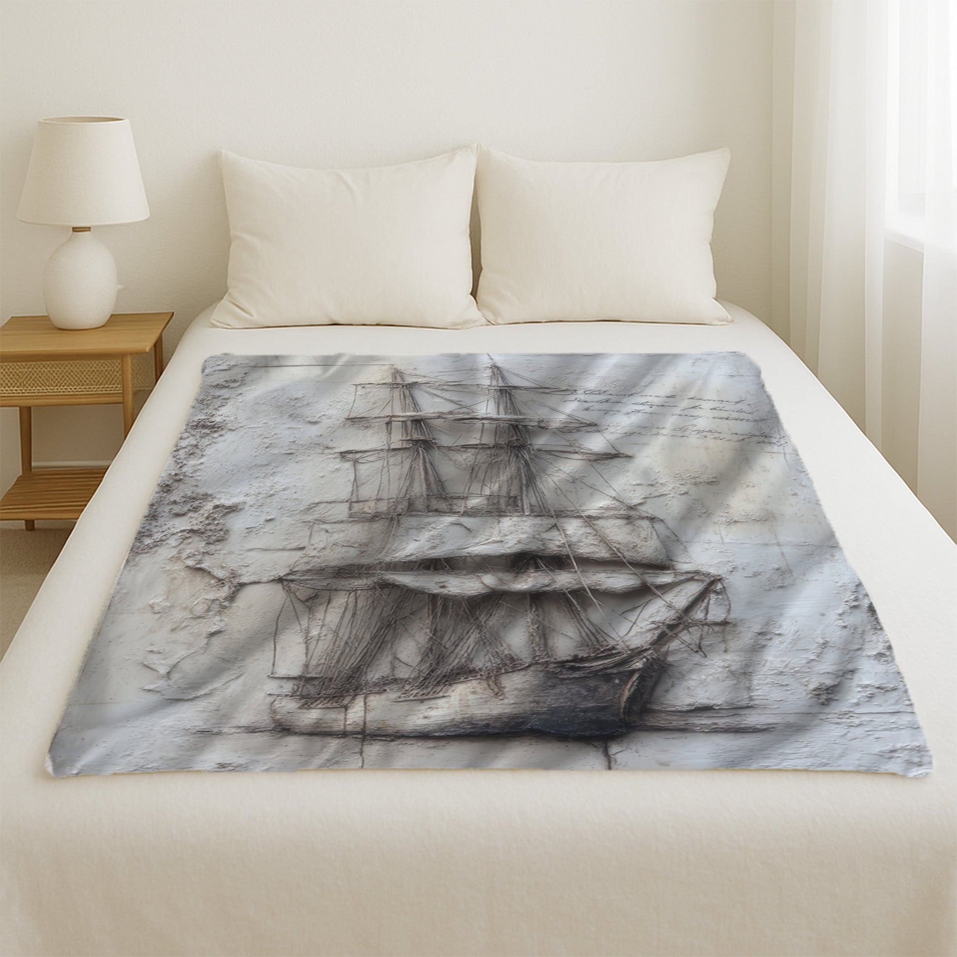 This Ship Imprint Blanket adds vintage exploration energy—bold decor for men drawn to the sea.