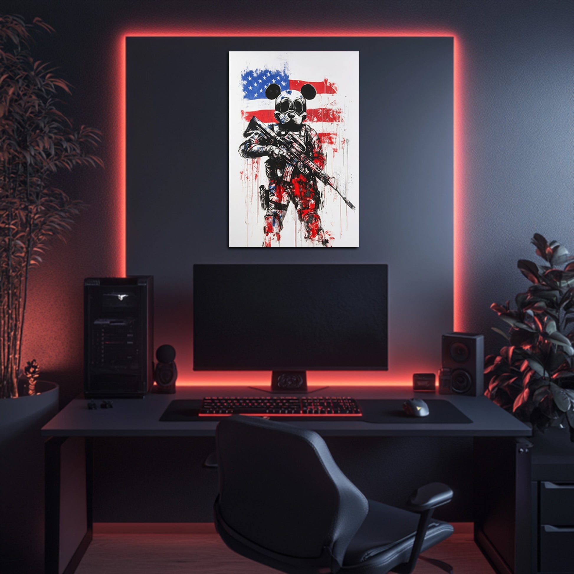 This Soldier Mouse Stands Guard Wall Art offers whimsical defense with patriotic flair, fun decor for guys.