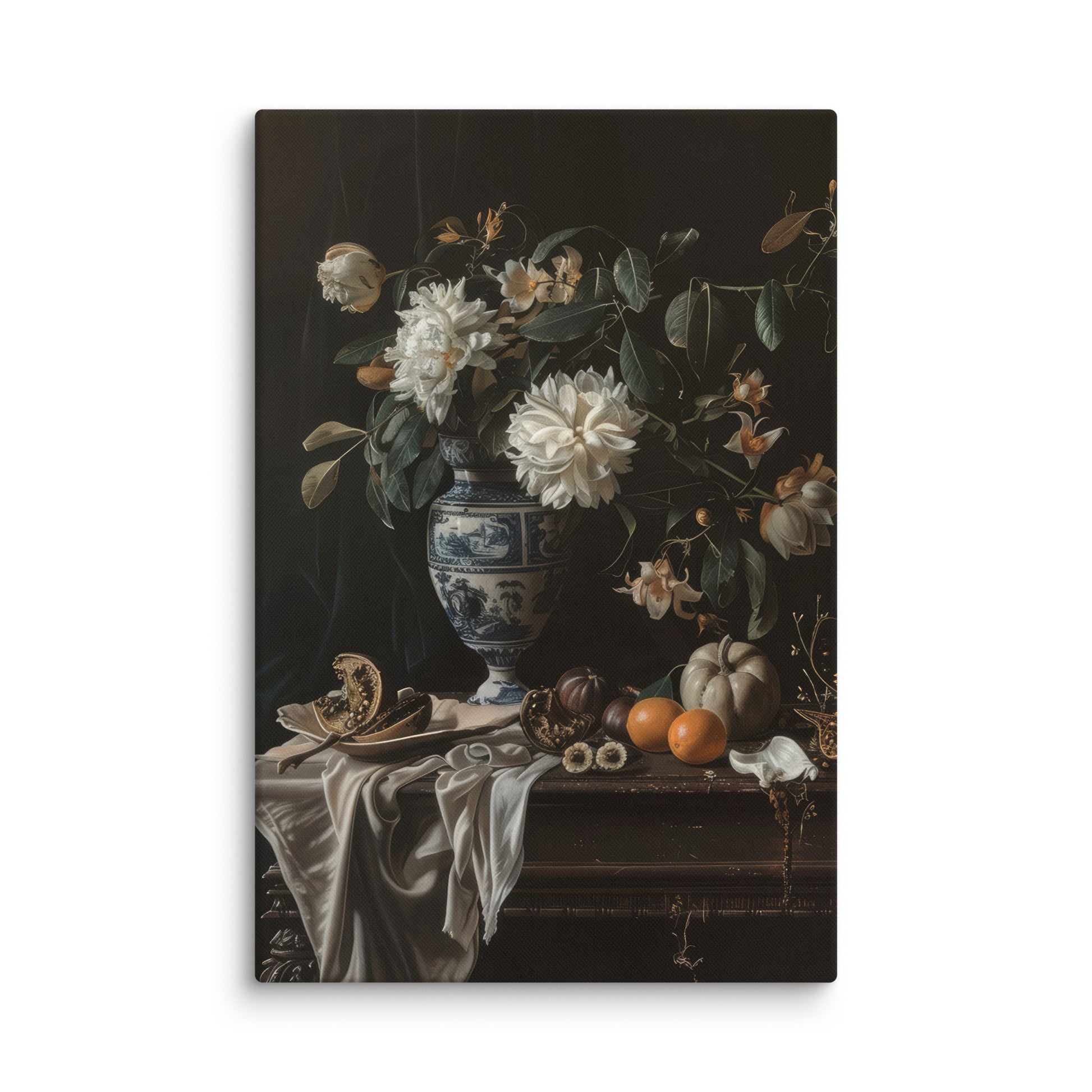 This masculine wall decor evokes timeless sophistication, blending dark moody tones with the richness of a still-life tableau—an intricate interplay of rugged elegance and classic refinement for discerning interiors.