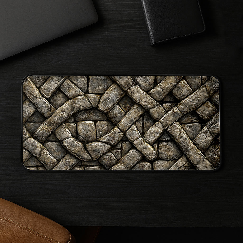 This Stone Interweave Pattern desk mat adds cool, textural masculinity to men’s decor with sleek stone geometry.