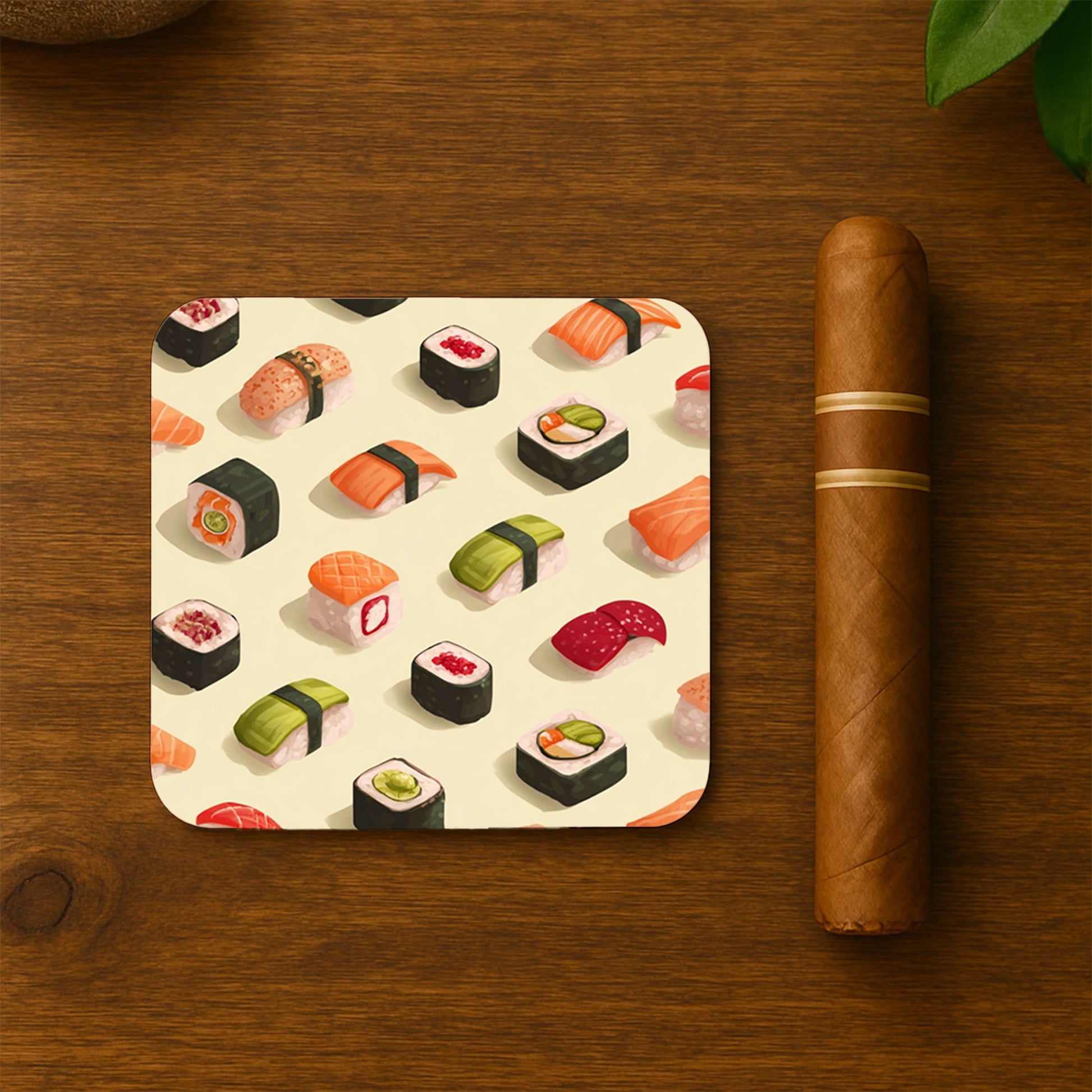 This Sushi Variety Pattern coaster set brings bold variety—masculine decor for eclectic men’s spaces.