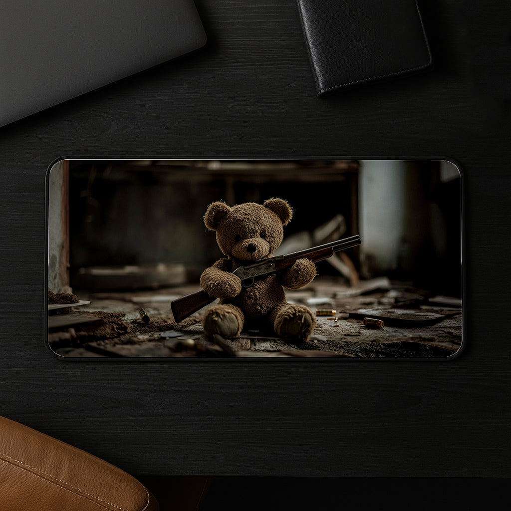 This Teddy Bear Guarding desk mat balances charm and grit in decor for guys with a tough-yet-tender tone.