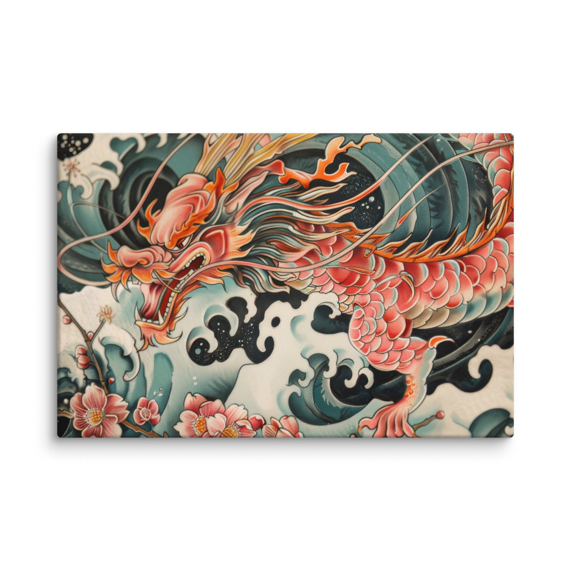 Awash in fiery reds and swirling blues, this wall decor for men captures the untamed spirit of myth and sea, blending ferocity with artistic precision.