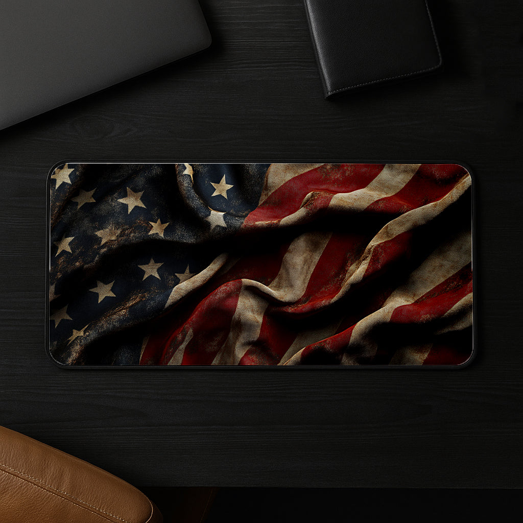 This Worn Stars And Stripes desk mat sets bold, masculine pride in motion with distressed flag textures.
