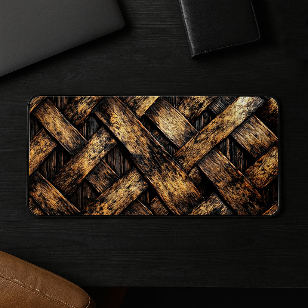 This Woven Wooden Pattern desk mat adds natural masculine warmth to decor for men’s workspace or lounge.
